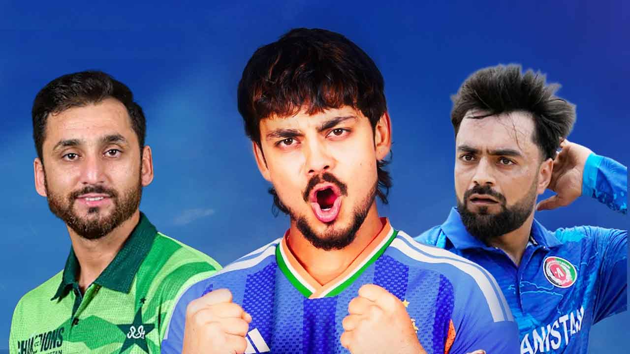 (বাঁ দিক থেকে) সলমন আঘা, ঈশান কিশন, রশিদ খান। গ্রাফিক: আনন্দবাজার ডট কম