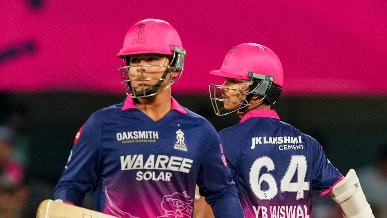 বৃষ্টি বিঘ্নিত ম্যাচে মুম্বই ইন্ডিয়ান্সের বিরুদ্ধে প্রথমে ব্যাট করে ৩ উইকেটে ১৫০ রান তুলল রাজস্থান রয়্যালস। গুয়াহাটিতে বৃষ্টির জন্য মঙ্গলবার খেলা শুরু হয় রাত ১০.১০-এ। টস জিতে ফিল্ডিং করার সিদ্ধান্ত নেন মুম্বই অধিনায়ক হার্দিক পাণ্ড্য। বৃষ্টির জন্য ম্যাচের ওভার সংখ্যা কমে ১১ হয়ে যাওয়ায় আগ্রাসী মেজাজে ইনিংসের শুরু করে রাজস্থানের বৈভব সূর্যবংশী-যশস্বী জয়সওয়াল জুটি।