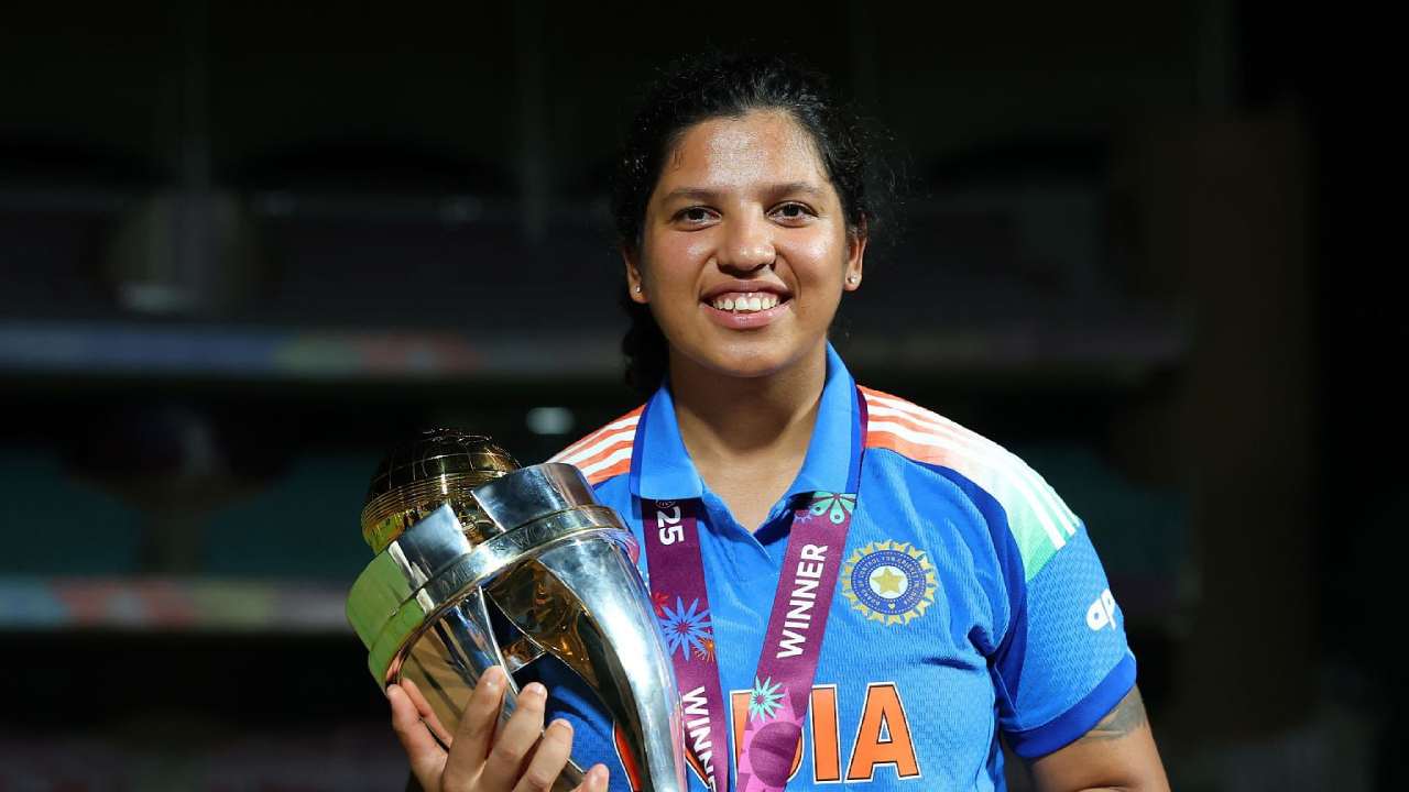 বিশ্বকাপ হাতে রিচা ঘোষ। ছবি: সমাজমাধ্যম।