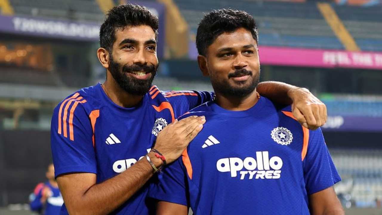 জসপ্রীত বুমরাহ (বাঁ দিকে) এবং সঞ্জু স্যামসন। ছবি: সমাজমাধ্যম।