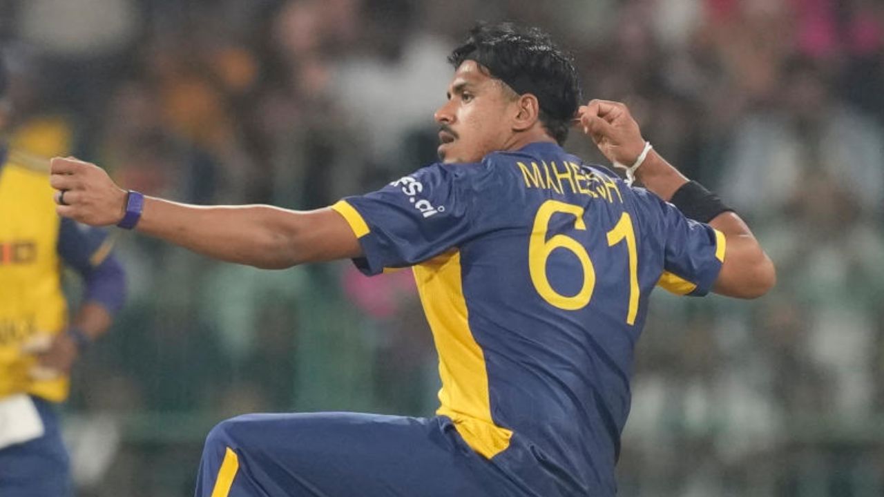 উইকেট নিয়ে থিকশানার উল্লাস। ছবি: পিটিআই।