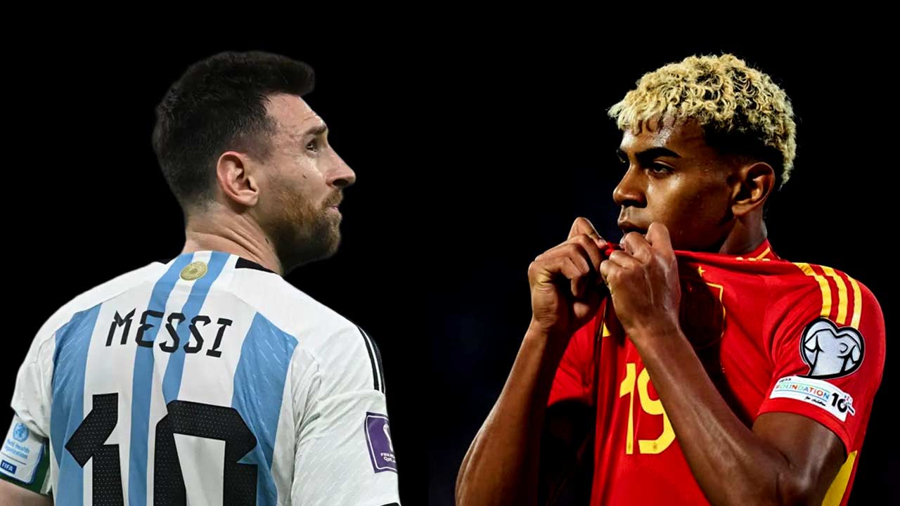 (বাঁ দিকে) লিয়োনেল মেসি এবং লামিনে ইয়ামাল (ডান দিকে)। গ্রাফিক: আনন্দবাজার ডট কম।