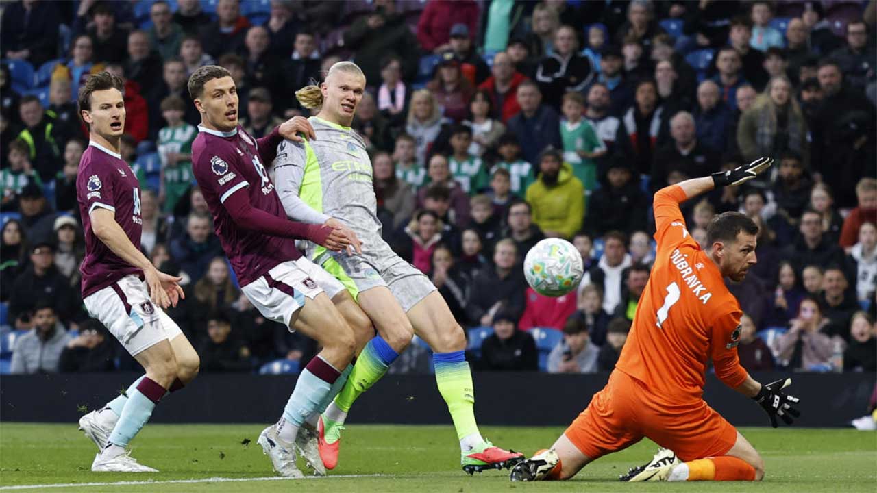 ম্যান সিটি ৩৩ ম্যাচে গোল করেছে ৬৬, খেয়েছে ২৯। আর্সেনাল গোল করেছে ৬৩, খেয়েছে ২৬টি। এই কারণেই দ্বিতীয় স্থানে নেমে যেতে হয়েছে আর্সেনালকে। আর ২১ অগস্টের পরে প্রথমবার পয়েন্ট টেবলের শীর্ষ স্থান দখল করল গুয়ার্দিওলার দল। বুধবার বার্নলির বিরুদ্ধে ম্যাচের শুরু থেকেই আক্রমণের ঝড় তোলে ম্যান সিটি। পাঁচ মিনিটে জেরেমি ডোকুর কাছ থেকে বল পেয়ে ঝড়ের গতিতে রক্ষণ ভেঙে পেনাল্টি বক্সে ঢুকে পড়েন হালান্ড। তাঁকে আটকাতে এগিয়ে এসেছিলেন গোলরক্ষক। ঠান্ডা মাথায় বাঁ-পায়ের নিখুঁত শটে দ্বিতীয় পোস্ট দিয়ে বল জালে জড়িয়ে দেন হালাল্ড। চলতি ইপিএলে ২৪তম গোল করলেন তিনি। এই ম্যাচে আরও গোল করতে পারতেন ম্যান সিটি তারকা। ৫৫ মিনিটে পেনাল্টি বক্সের মধ্যে থেকে নেওয়া তাঁর শট ধাক্কা খায় পোস্টে। এ ছাড়া বেশ কয়েক বার পেনাল্টি বক্সের মধ্য থেকে বল বাইরে মারেন হালান্ড।