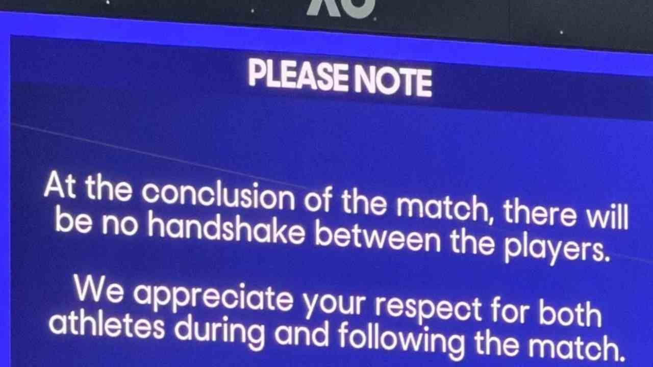 খেলা শুরুর পরেই র়ড লেভার এরিনার বড়পর্দায় একটি বার্তা ভেসে ওঠে। তাতে লেখা, “খেলা শেষে দুই খেলোয়াড় হাত মেলাবেন না। ম্যাচ চলাকালীন আমরা আশা করব, আপনারা দুই খেলোয়াড়কে সম্মান জানাবেন।” টেনিসে এই ছবি আগে দেখা যায়নি। যত কঠিন প্রতিপক্ষই হোন না কেন, বা ব্যক্তিগত সমস্যা থাকুক না কেন, খেলোয়াড়োচিত মানসিকতা দেখা গিয়েছে। বৃহস্পতিবার সাবালেঙ্কা বনাম সোয়াইতোলিনা ম্যাচে তা দেখা গেল না।
