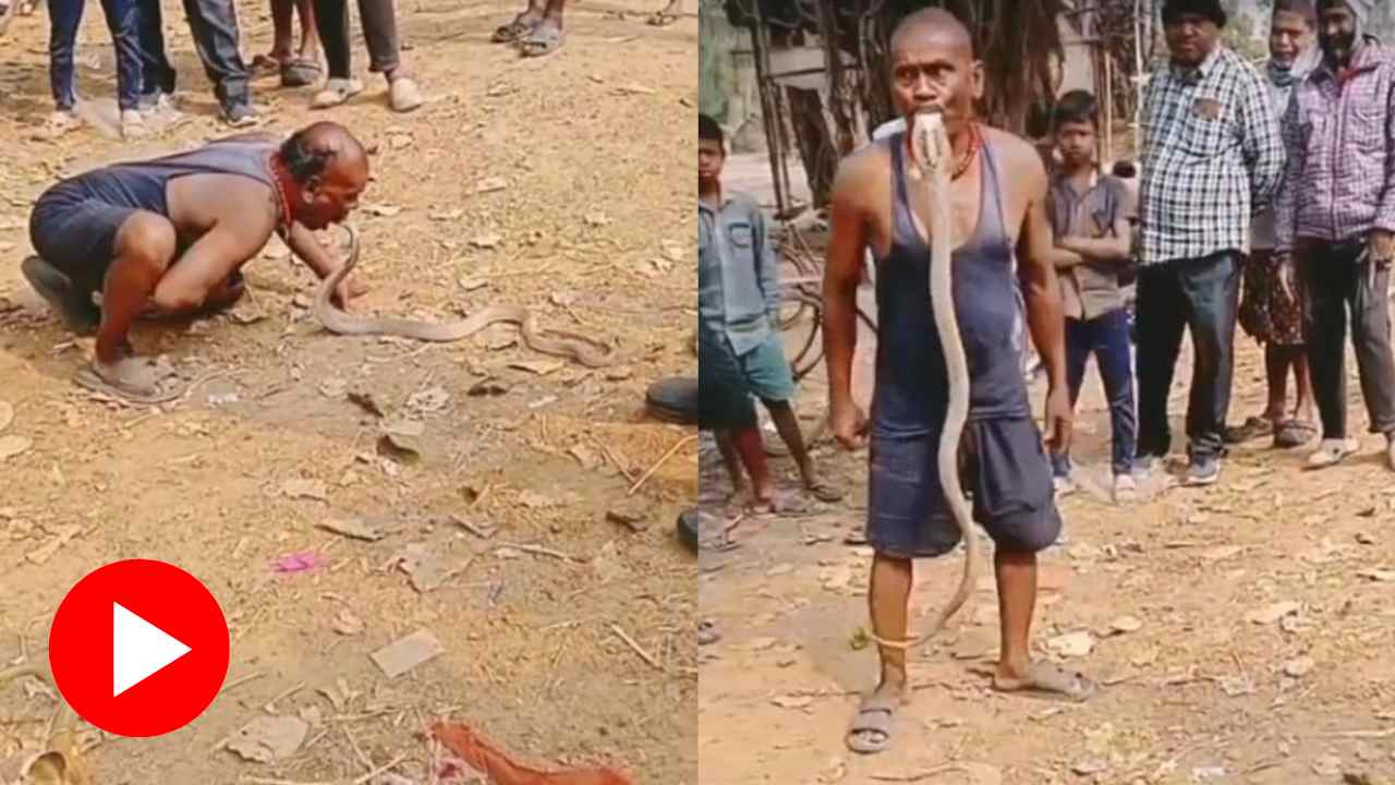 ভাইরাল সেই ভিডিয়োয় দেখা গিয়েছে, ফাঁকা একটি জায়গায় কয়েক জন লোক জড়ো হয়েছেন প্রৌঢ়ের কীর্তি দেখার জন্য। মাটিতে ফণা তোলা সাপের কাছে ঝুঁকে পড়ে তাকে মুখ দিয়ে ধরার চেষ্টা করতে দেখা যায় ওই সাপুড়েকে। সংবাদ প্রতিবেদনে বলা হয়েছে ঘটনাটি ওড়িশার বালাসোরের। সাপুড়ের নাম খাগা ভাই। দ্রুত গতিতে তিনি সরীসৃপটিকে সরাসরি তাঁর মুখ দিয়ে চেপে ধরেন। সাপটি খাগার মুখ থেকে শূন্যে ঝুলতে থাকে। তার পর লেজটি ধরে সাপটিকে ধীরে ধীরে মুখ থেকে বার করে মুক্তি দেন। সাপটিকে তাঁর হাত থেকে অন্য এক জন কেড়ে নেওয়ার চেষ্টা করতেই তাঁকে সরিয়ে দেন খাগা। ধীরে ধীরে সাপটিকে মাটিতে শুইয়ে দিয়ে সাপ নিয়ে খেলা শেষ করে দেন ওই সাপুড়ে। এর পর দু’টি সাপকে মাটি থেকে তুলে একটি কাপড়ে থলিতে পুরে নেন তিনি। ভিডিয়োটি এখানেই শেষ হয়ে যায়।