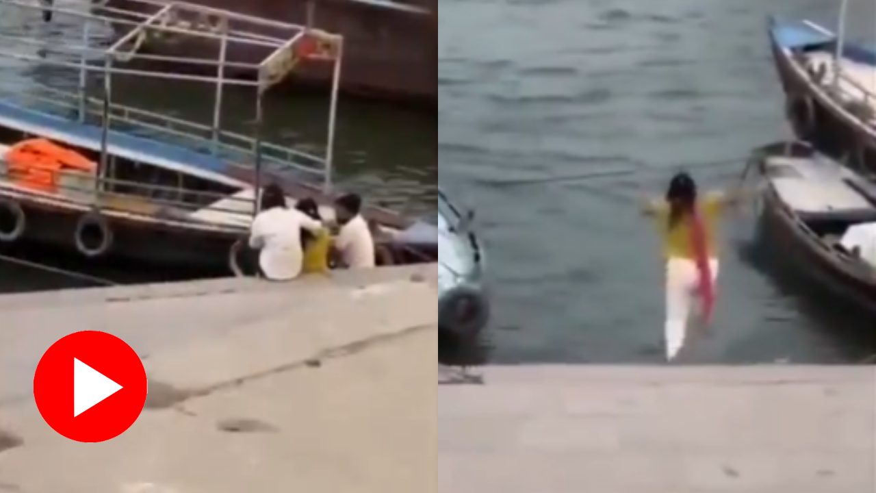 গঙ্গায় ঝাঁপ তরুণীর। ছবি: এক্স থেকে নেওয়া।