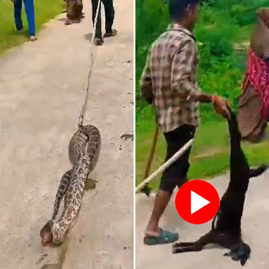 এই মর্মান্তিক ভিডিয়োটি ‘এনসিআর পত্রিকা’ নামের একটি সংবাদমাধ্যমের এক্স হ্যান্ডল থেকে পোস্ট করা হয়েছে। সেখানে দেখা গিয়েছে গ্রামবাসীরা মৃত ছাগল এবং সাপটিকে রাস্তায় টেনেহিঁচড়ে নিয়ে যাচ্ছে। এক জন কালো ছাগলের মৃতদেহটি নিয়েছেন এবং অন্য জনকে লম্বা লাঠি দিয়ে মৃত সাপটিকে টেনে নিয়ে যেতে দেখা গিয়েছে।