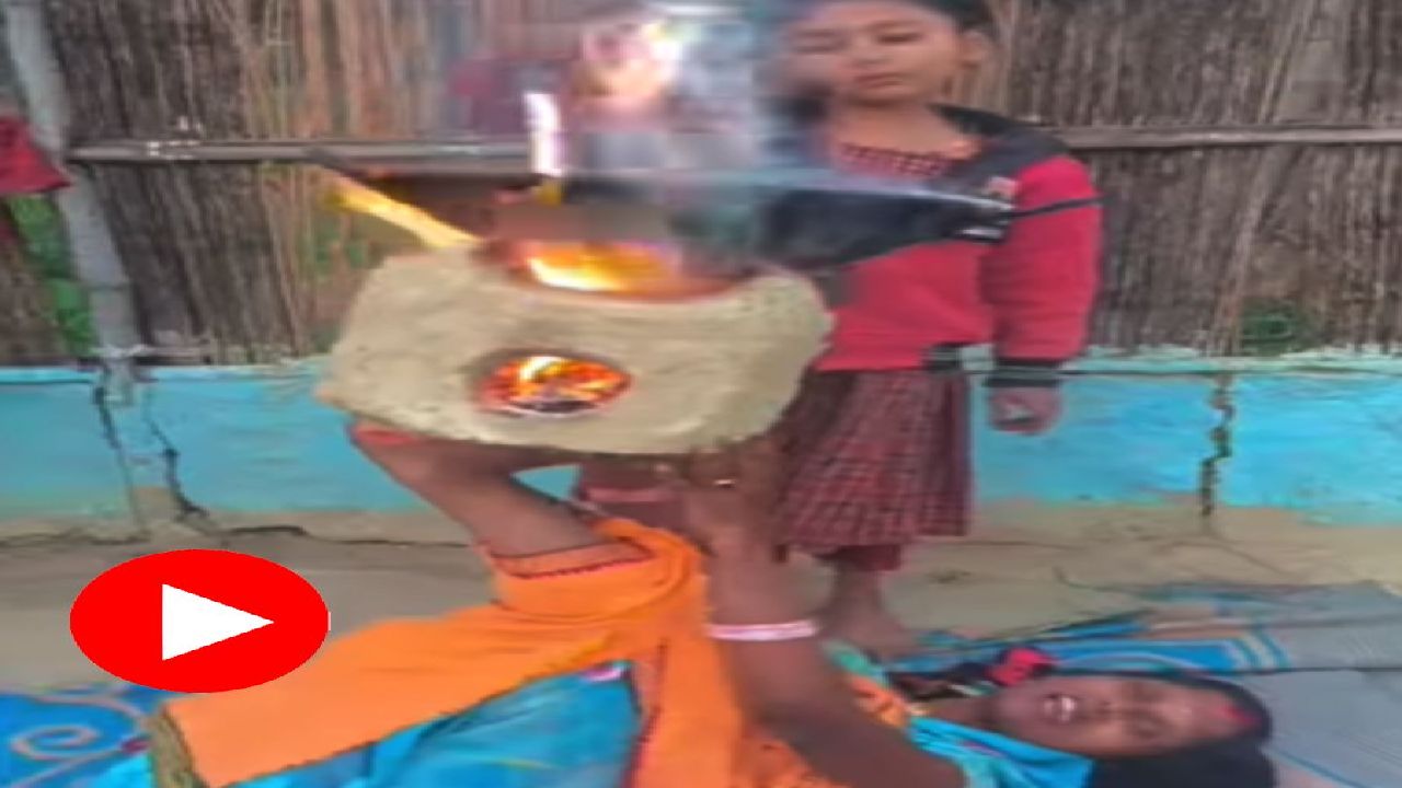 ভাইরাল সেই ভিডিয়োয় দেখা গিয়েছে, বাড়ির উঠোনে পাতা চাদর। সেটির উপর সোজা হয়ে শুয়ে রয়েছেন এক তরুণী। পা দু’টি সামনের দিকে লম্বা করে তোলা। হাঁটুর কাছটা ভাঁজ করে রেখেছেন তরুণী। কারণ, পায়ের পাতার উপর রাখা জ্বলন্ত উনুন। পাছে তা উল্টে গায়ে পড়ে যায়, তাই উনুনটিকে দু’হাত দিয়ে ধরে ঠেকা দিয়েও রেখেছেন। সেই উনুনের আঁচে কড়াই বসিয়ে খুন্তি নাড়ছে কিশোরী। আর তরুণী ক্যামেরার দিকে তাকিয়ে ভক্তিমূলক গানে ঠোঁট নাড়াচ্ছেন। তরুণীর অদ্ভুত কাণ্ডের সেই ভিডিয়োই ছড়িয়ে পড়েছে সমাজমাধ্যমের পাতায়।