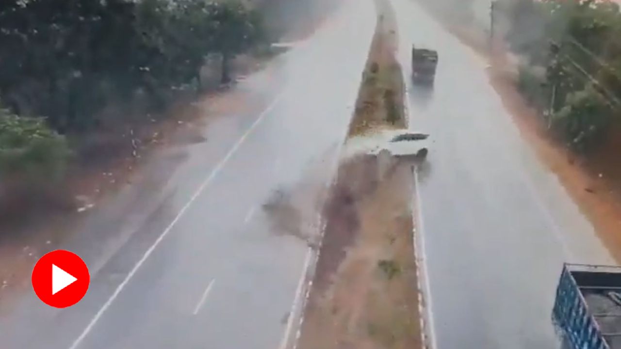 ‘ডেডলি কলেশ’ নামের অ্যাকাউন্ট থেকে এক্স (সাবেক টুইটার) হ্যান্ডলের পাতায় একটি ভিডিয়ো পোস্ট করা হয়েছে। সেই ভিডিয়োয় দেখা গিয়েছে যে, একটি সাদা রঙের টয়োটা ইনোভা ব্র্যান্ডের গাড়ি ঝোড়ো হাওয়ায় নিয়ন্ত্রণ হারিয়ে ডিভাইডার পার করে অন্য সড়কে পাল্টি খেয়ে পড়ে। সেই সময় বিপরীত দিক থেকে আসা একটি লরির সঙ্গে ধাক্কা লাগে গাড়িটির।