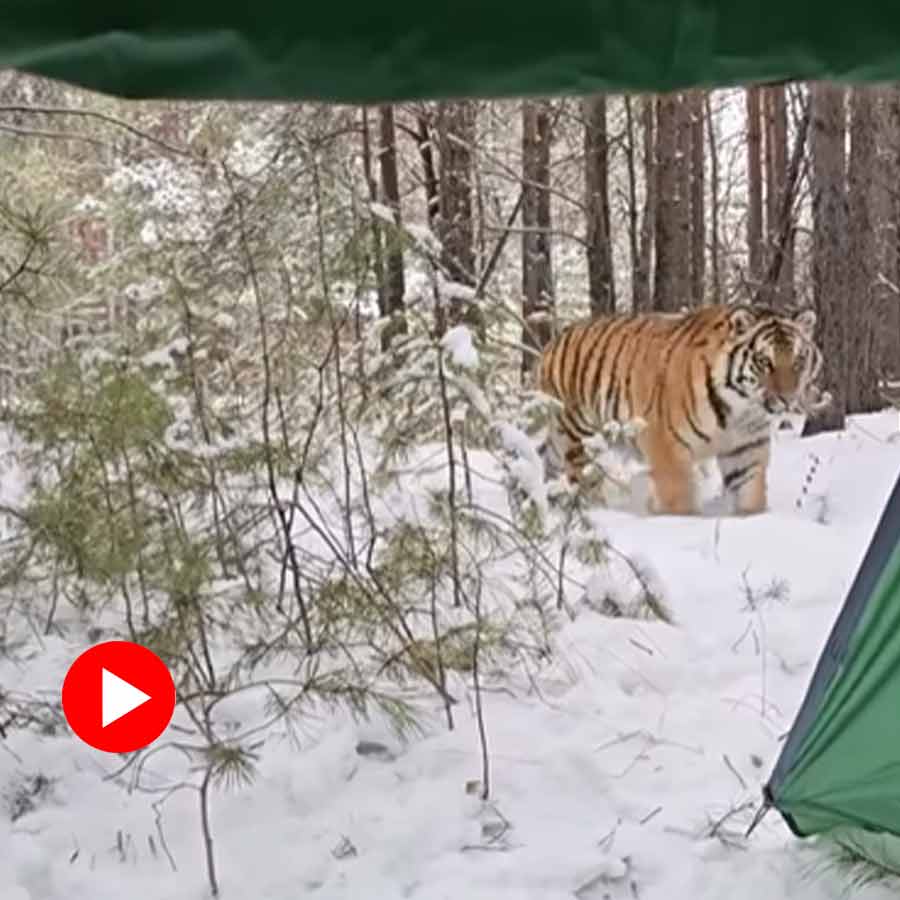 বরফে ঢাকা পাহাড়ে ট্রেকিং করতে গিয়েছেন এক তরুণ। তাঁবুর প্রবেশপথের সামনে বসে চা পান করছিলেন তিনি। হঠাৎ তিনি দেখলেন যে, তাঁবুর অদূরেই দাঁড়িয়ে রয়েছে একটি সাইবেরিয়ান টাইগার। গাছের আড়াল থেকে সে তাঁবুর দিকে এগিয়ে যেতে থাকে। তাঁবুর সামনে এসে ‘তল্লাশি’ চালিয়ে সেখান থেকে মুখ ফিরিয়ে অন্য দিকে চলে যায় বাঘটি। এই ভি়ডিয়োটি দেখে এক জন লিখেছেন, ‘‘বাঘের এলাকায় ওই তরুণ অনাহূত অতিথি। তাই ভাল করে তল্লাশি চালিয়ে গেল সে।’’