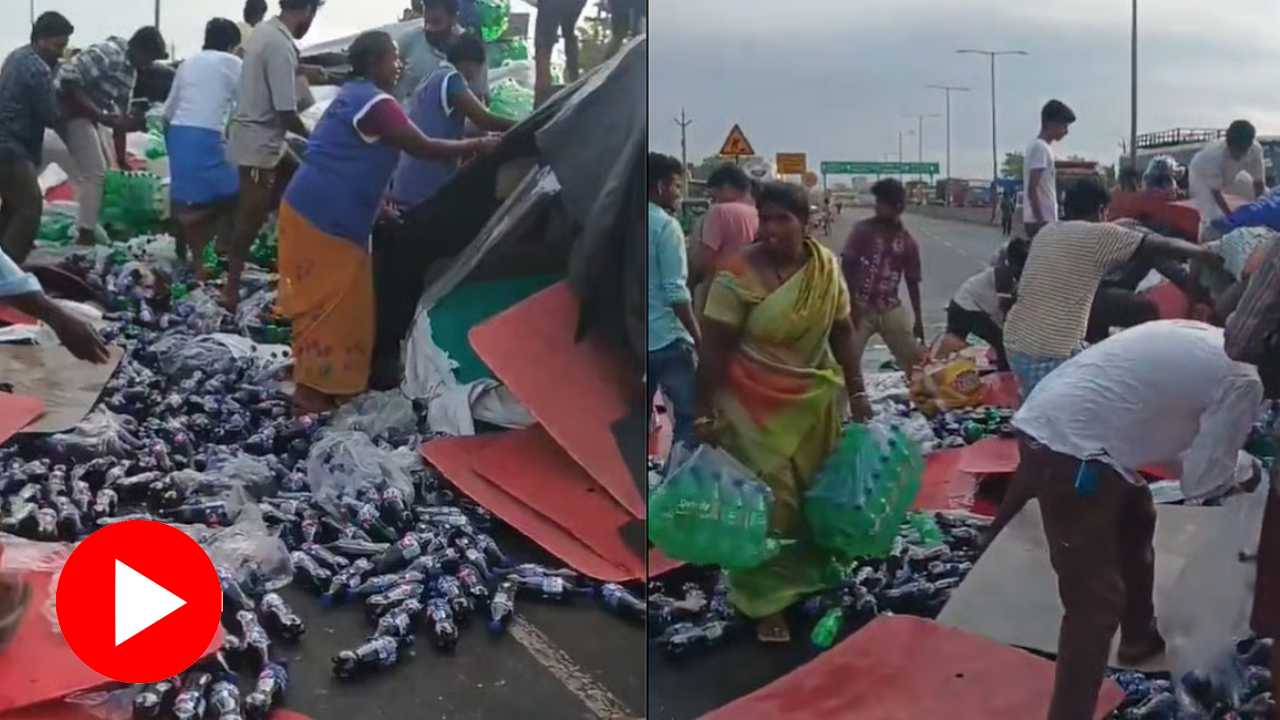 মাঝরাস্তায় উল্টে গেল ঠান্ডা পানীয়ের ট্রাক, সাহায্য করার বদলে স্থানীয়েরা চালালেন লুট! ভিডিয়ো ভাইরাল