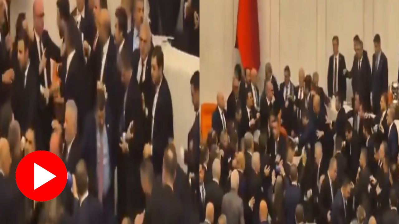 তুরস্কের পার্লামেন্টে শপথগ্রহণ অনুষ্ঠানে আইনপ্রণেতাদের হাতাহাতি। ছবি: এক্স থেকে নেওয়া।