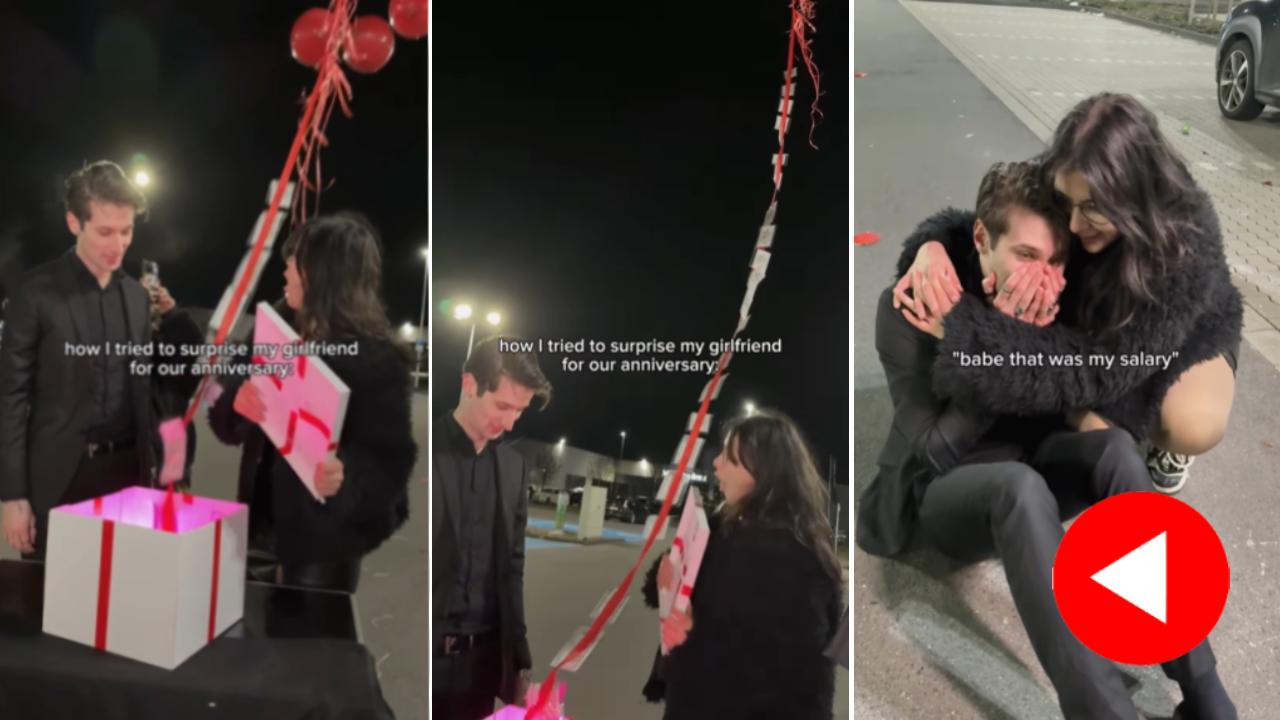 ভাইরাল ভিডিয়োয় দেখা গিয়েছে, রাতের অন্ধকারে একটি ফাঁকা জায়গায় দাঁড়িয়ে রয়েছেন এক যুগল। দু’জনের শরীরেই কালো পোশাক। তাঁদের সামনে একটি সাদা বাক্স রয়েছে। যুবকের বান্ধবী বাক্স খুলতেই তার মধ্যে থাকা গ্যাসবেলুন আকাশে উড়ে যায়। আনন্দে তরুণকে আনন্দে জড়িয়ে ধরেন তাঁর বান্ধবী। তরুণও তাঁকে জড়িয়ে ধরেন। এর পর সম্বিৎ ফেরে তাঁর। মনে পড়ে বেলুনের সুতোয় বেঁধে রেখেছিলেন মাসিক বেতনের পুরোটাই। সঙ্গে সঙ্গে গ্যাসবেলুনের দিকে দৌড়োতে শুরু করেন তিনি। কিন্তু তত ক্ষণে সেটি তরুণের নাগালের বাইরে চলে গিয়েছে। মাটিতে শুয়ে পড়েন তরুণ। আবেগপ্রবণ হয়ে পড়েন। এর পর তাঁকে জড়িয়ে সান্ত্বনা দেন তাঁর বান্ধবী। সেই ভিডিয়োই প্রকাশ্যে এসেছে। জানা গিয়েছে, ওই যুবকের প্রায় দু’লক্ষ টাকা গ্যাসবেলুনের সঙ্গে উড়ে গিয়েছে।