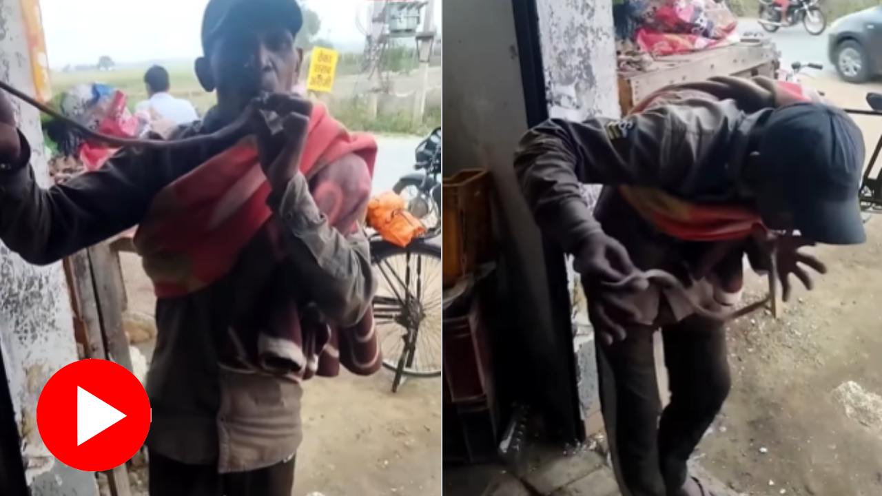 ভাইরাল সেই ভিডিয়োয় দেখা গিয়েছে, রাস্তার ধারে দাঁড়িয়ে রয়েছেন এক যুবক। তাঁর হাতে একটি মাঝারি মাপের সাপ। সাপের মুখ নিজের মুখে ঢুকিয়ে রেখেছেন তিনি। সাপটিকে চুমু খাওয়ার চেষ্টা করে নানা কেরামতি দেখাচ্ছেন। এমন সময়েই ঘটে যায় অঘটন। সাপটি ছোবল মারে যুবকের জিভে। ছিটকে পড়ে যান যুবক। তবে সামলে নিয়ে কিছু ক্ষণ পরে আবার সাপটির মুখ নিজের মুখে ঢোকান। সেই ভিডিয়োই প্রকাশ্যে এসেছে। দাবি, যুবক যে সাপটিকে নিয়ে কেরামতি দেখাচ্ছিলেন, সেটি একটি বিষধর গোখরো। সাপের কামড়ে যুবকের মৃত্যু হয়েছে বলেও জানা গিয়েছে।