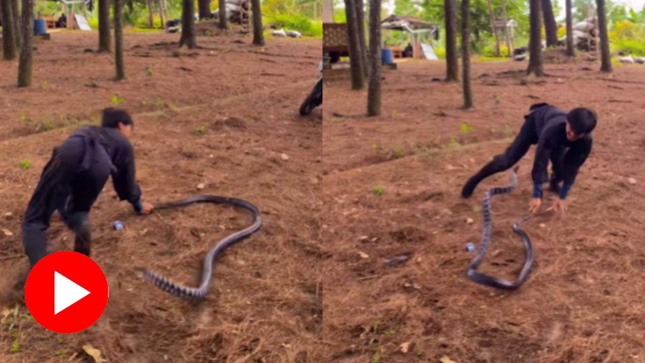বিশাল সাপের লেজ ধরে ঘোরাচ্ছিলেন তরুণ! সুযোগ পেয়ে সর্বশক্তিতে তেড়ে এল সে, তার পর... ভাইরাল ভিডিয়ো
