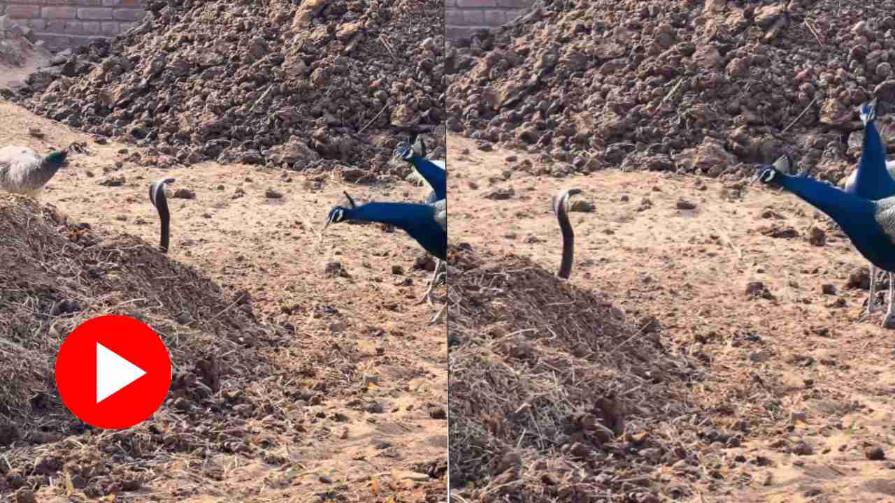 ভাইরাল সেই ভিডিয়োয় দেখা গিয়েছে, গ্রামের রাস্তায় চড়ে বে়ড়াচ্ছে কয়েকটি ময়ূর-ময়ূরী। এমন সময় দু’টি ময়ূরের সামনে হঠাৎ করেই চলে আসে একটি বিশাল গোখরো। ময়ূরের উপস্থিতি টের পেয়ে ফণা তুলে ফুঁসতে থাকে সে। গোখরোর পাশে এসে দাঁড়ায় একটি ময়ূরীও। তারা অবাক হয়ে দেখতে থাকে বিষাক্ত সাপটিকে। সেই ভিডিয়োই প্রকাশ্যে এসেছে।