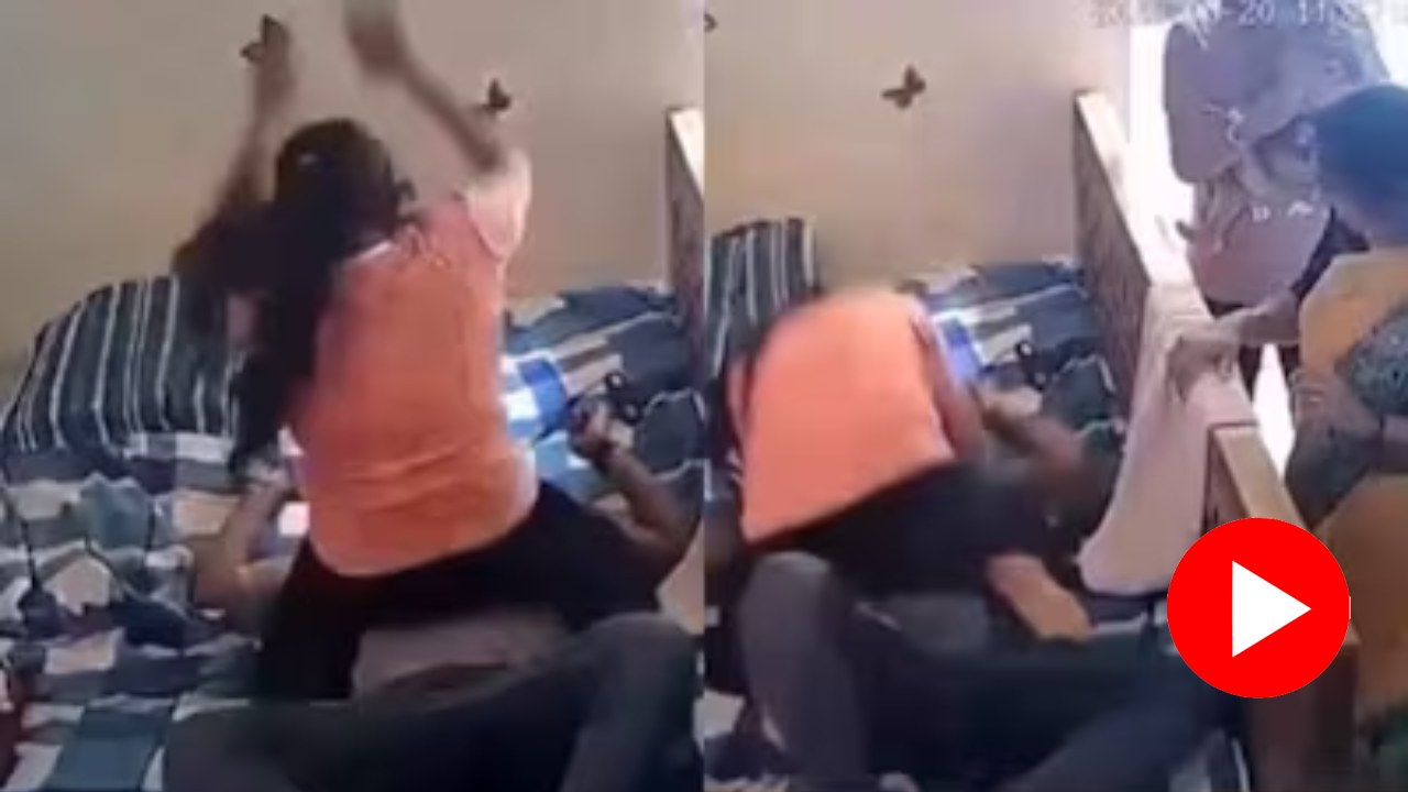 ভাইরাল ভিডিয়োয় দেখা গিয়েছে, ঘরের ভিতরে একটি খাটে শুয়ে রয়েছেন এক যুবক। তাঁর বুকের উপর বসে রয়েছেন এক তরুণী। পর পর আঘাত করে যাচ্ছেন যুবককে। দু’হাতই চালাচ্ছেন। তবে যুবক কোনও প্রতিবাদ করছেন না।
