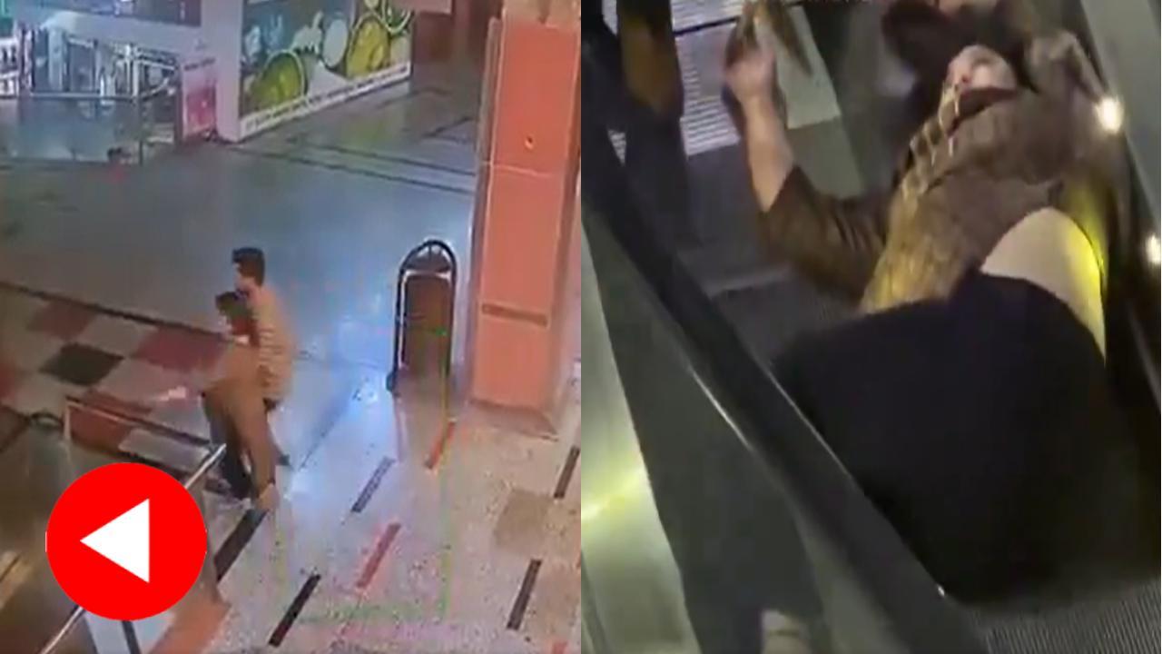 চলন্ত সিঁড়ি থেকে পড়ে গেলেন মদ্যপ তরুণী। ছবি: এক্স থেকে নেওয়া।