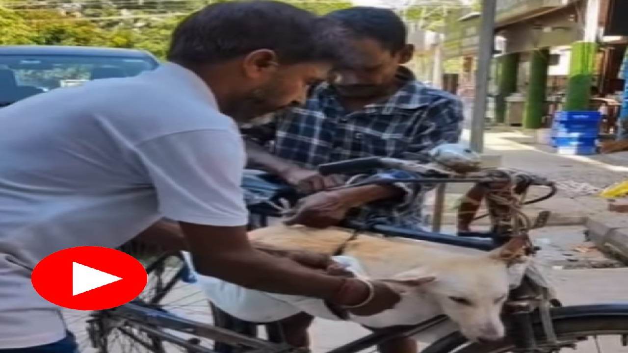 পাড়ার কুকুর অসুস্থ হয়ে পড়েছে। গাড়ি ভাড়া করে তাকে পশু চিকিৎসালয়ে নিয়ে যাওয়ার সার্মথ্য নেই। তাই এক তরুণ সাইকেলকেই অ্যাম্বুল্যান্সে পরিণত করলেন। সিটের সামনে থাকা রডে কুকুরটিকে বেঁধে নিয়ে গেলেন চিকিৎসার জন্য। মন ভাল করা সেই ভিডিয়োই ছড়িয়ে পড়েছে সমাজমাধ্যমের পাতায়। যদিও সেই ভিডিয়োর সত্যতা যাচাই করেনি আনন্দবাজার ডট কম। ভিডিয়ো অনুসারে ঘটনাটি ঘটেছে মুম্বইয়ে।
