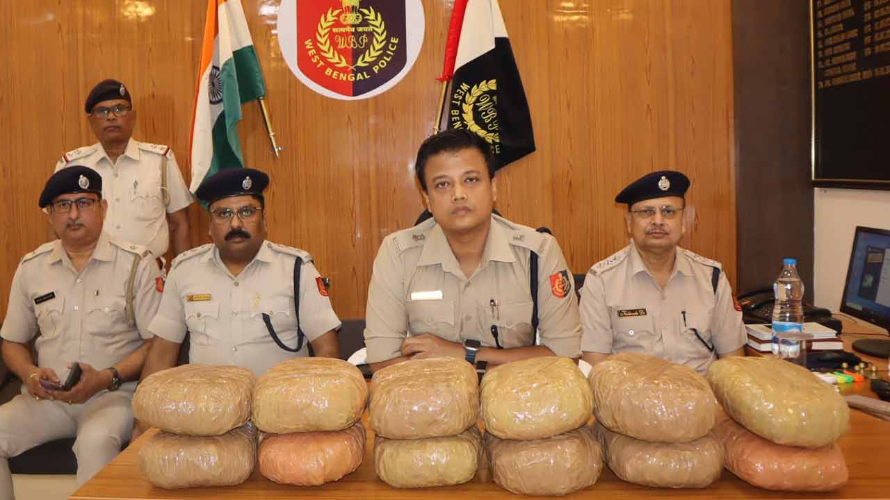 খড়্গপুরে উদ্ধার হওয়া মাদক নিয়ে এসআরপি মিতুন দে-র সাংবাদিক বৈঠক।