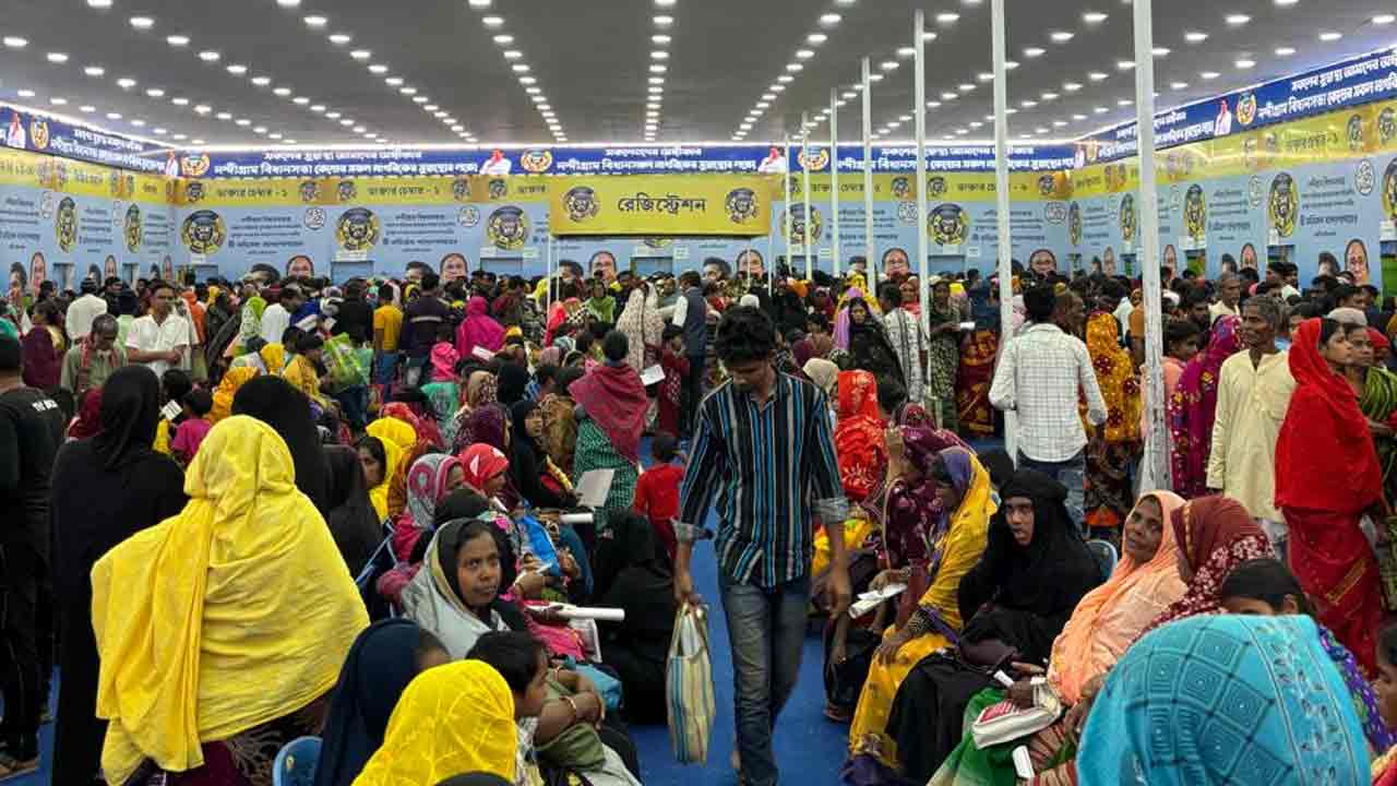 শনিবার নন্দীগ্রামের সেবাশ্রয় শিবিরের শেষ দিনে পরিষেবা নিতে আসা রোগীদের ভিড়। ছবি: সংগৃহীত।