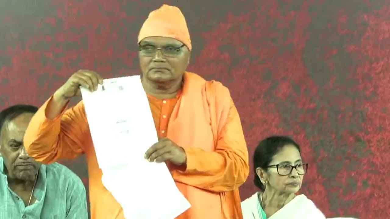 এক দশকের বেশি তিনি রামকৃষ্ণ সারদা মিশনের প্রেসিডেন্ট। কিন্তু এসআইআর তালিকায় তাঁর নেই। এই অনুযোগ নিয়ে মুখ্যমন্ত্রী মমতা বন্দ্যোপাধ্যায়ের ধর্নামঞ্চে উপস্থিত হয়েছেন এক সন্ন্যাসী। শুক্রবার ধর্মতলার মেট্রো চ্যানেলে তাঁকে পাশে নিয়ে বিজেপিকে নিশানা করেন মমতা। তিনি বলেন, ‘‘দেখুন, ওঁরা ধর্মের বড় বড় কথা বলেন।’’