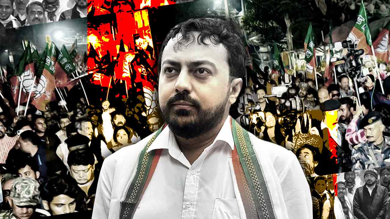 যুবমোর্চার রাজ্য সভাপতি ইন্দ্রনীল খাঁ। গ্রাফিক: আনন্দবাজার ডট কম।