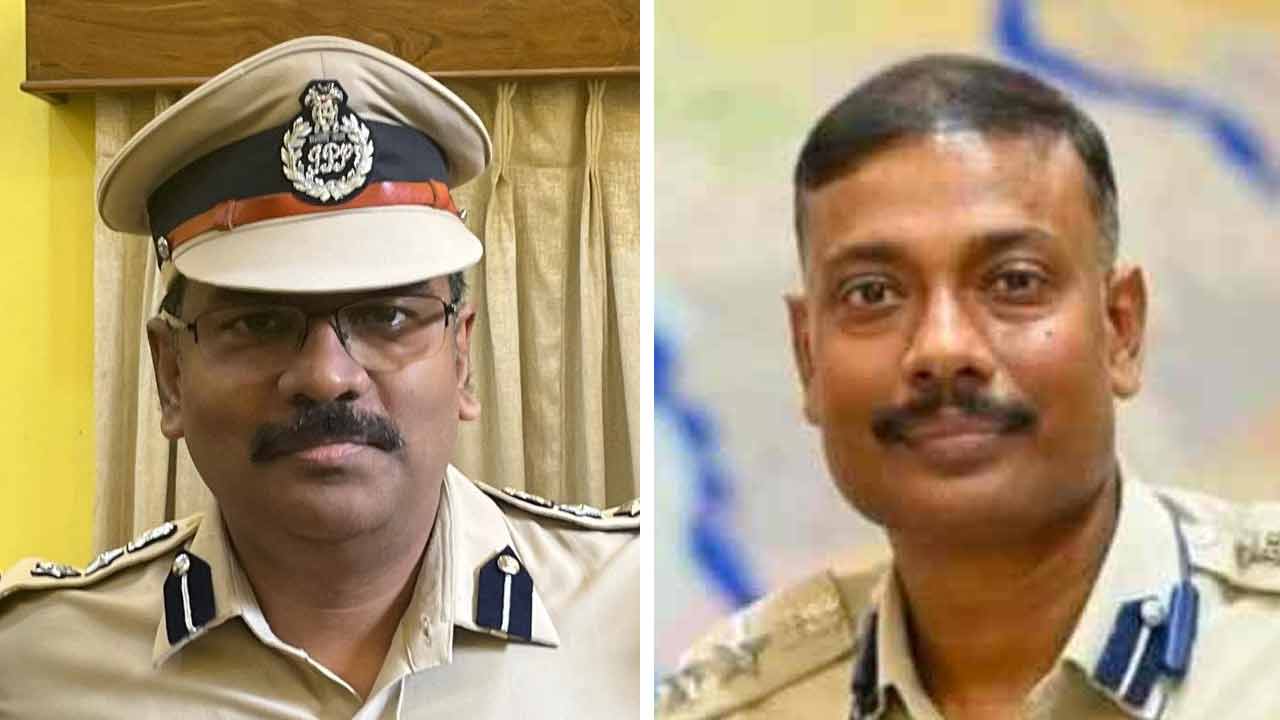 (বাঁ দিকে) পূর্ব মেদিনীপুরের নতুন পুলিশ সুপার পারিজাত বিশ্বাস। কোচবিহারের প্রাক্তন পুলিশ সুপার দ্যুতিমান ভট্টাচার্য (ডান দিকে)। —ফাইল চিত্র।