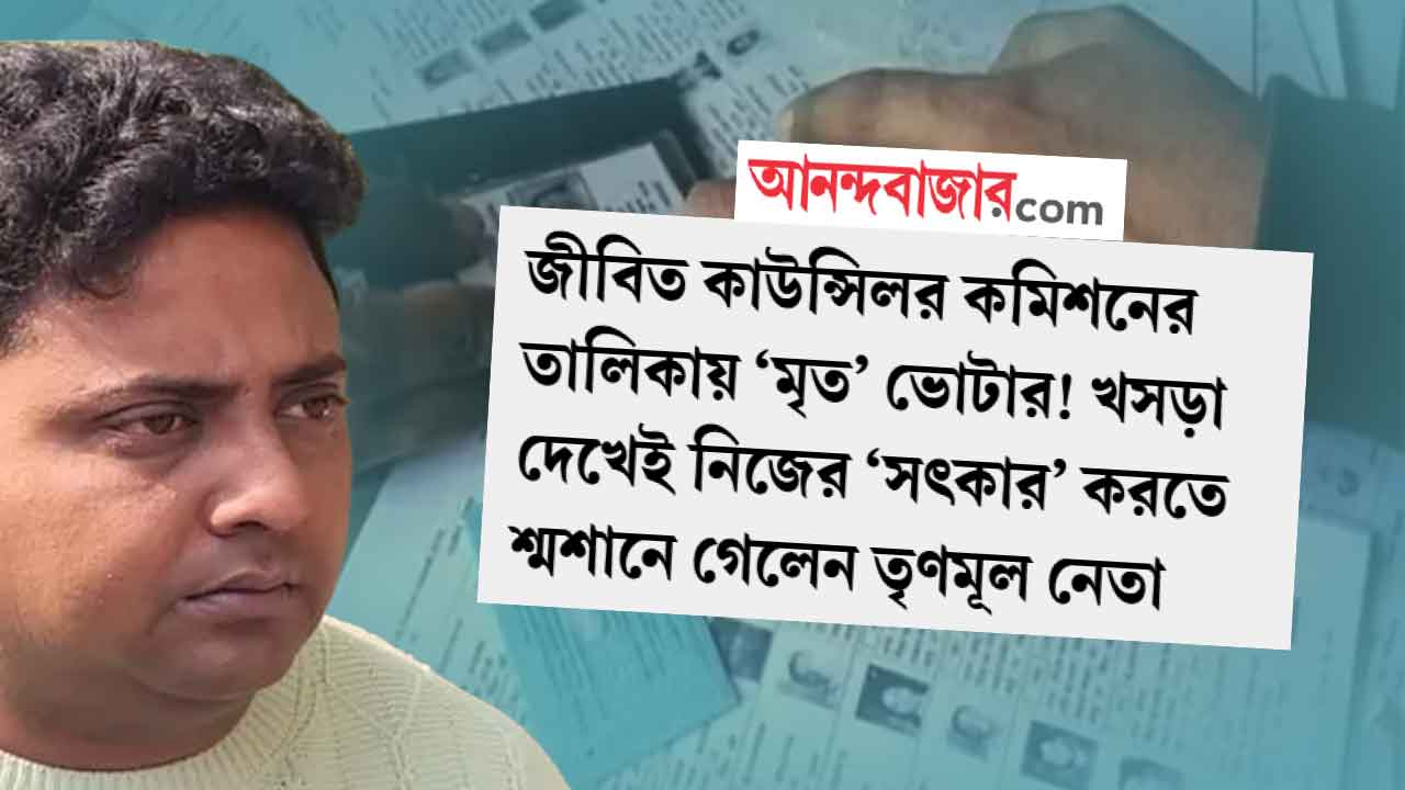 তিনি জনপ্রতিনিধি। এসআইআর আবহে এলাকার বাসিন্দাদের ভরসা দিয়েছেন। কিন্তু নির্বাচন কমিশনের বুথভিত্তিক মৃত এবং স্থানান্তরিতদের তালিকা দেখে চোখ কপালে উঠেছিল তৃণমূল কাউন্সিলর সূর্য দে-র। নিজেকে ‘মৃত’ দেখে দলবল নিয়ে শ্মশানে গিয়ে কমিশনকে আবেদন করেছিলেন, তাঁকে যেন চুল্লিতে ঢুকিয়ে দেওয়া হয়। তার পর নিজের শ্রাদ্ধের আয়োজন করে কমিশনকে আরও একপ্রস্ত খোঁচা দেন। এ বার হুগলির ডানকুনির সেই সূর্যের নাম রয়েছে ভোটার তালিকায়। নতুন ভোটার হিসাবে তাঁর নাম ওঠায় তৃণমূলনেত্রী মমতা বন্দ্যোপাধ্যায় এবং অভিষেক বন্দ্যোপাধ্যায়ের লড়াইয়ের স্তুতি করলেন সূর্য।