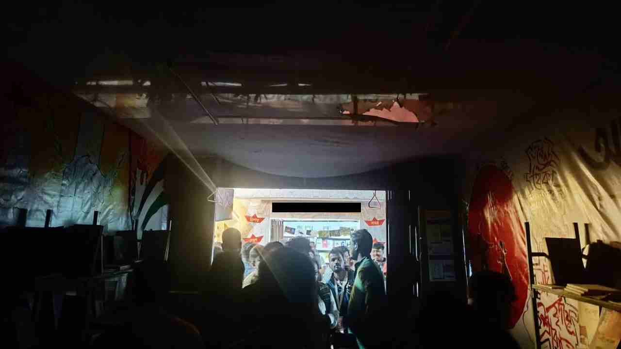 যদিও আগুন ধরার কিছু ক্ষণের মধ্যেই তা নিয়ন্ত্রণে আনা সম্ভব হয়। এসএফআই নেতৃত্বের দাবি, দমকলের কর্মীরা ঘটনাস্থলে পৌঁছোনোর আগেই তাঁদের দুই কর্মী অগ্নিনির্বাপণ যন্ত্র দিয়ে ওই আগুন নেবাতে সক্ষম হন। তার এক ঘণ্টা পরে ফের আলো জ্বলে স্টলে।