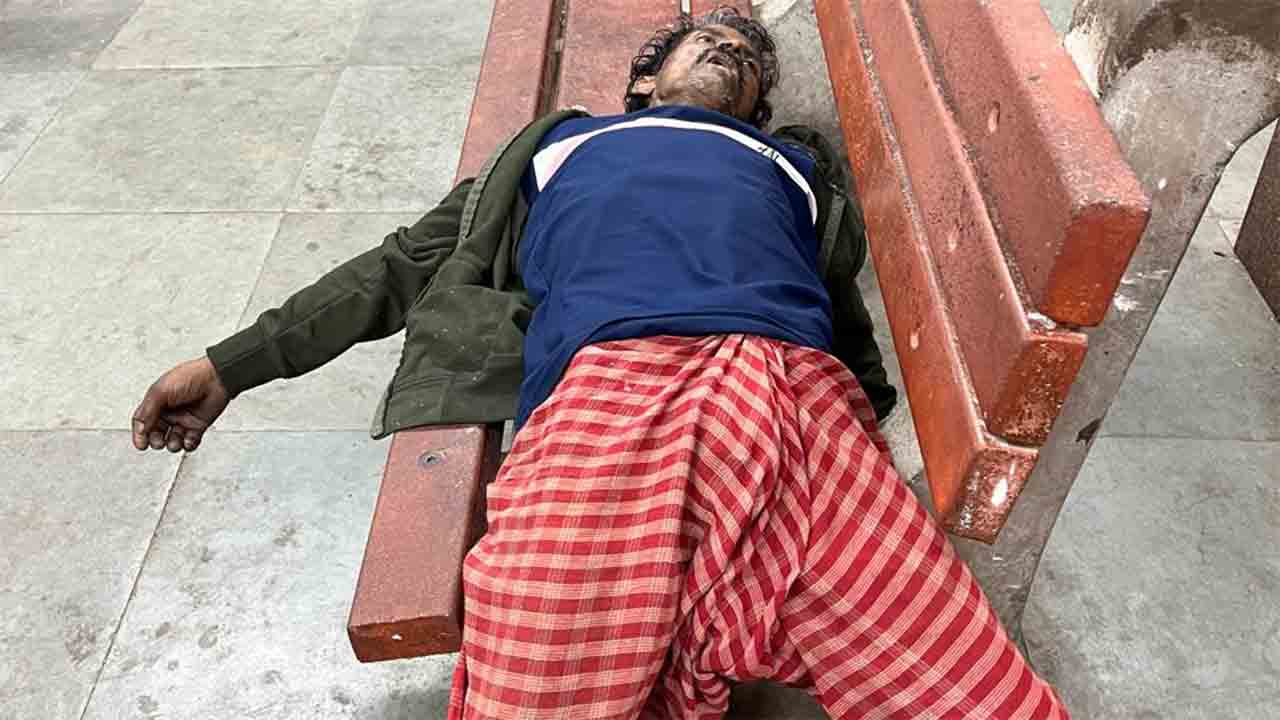 সূত্রের খবর, সোমবার রাত ১০টা নাগাদ দমদম স্টেশনে ২ এবং ৩ নম্বর প্ল্যাটফর্মের মাঝের বেঞ্চে এক ব্যক্তিকে পড়ে থাকতে দেখা যায়। তাঁর গায়ে রয়েছে জ্যাকেট ও টিশার্ট। কোমর থেকে জড়ানো রয়েছে গামছা। উপস্থিত যাত্রীদের দাবি, অনেক ডাকাডাকির পরেও ওই ব্যক্তির সাড়া মেলেনি। খবর পেয়ে ঘটনাস্থলে যায় রেলপুলিশ এবং কর্মীরা। ওই ব্যক্তিকে সরকারি ভাবে রেলের তরফে মৃত ঘোষণা করা হয়নি রাত পর্যন্ত। অথচ হাসপাতালে নিয়ে যাওয়ায় কেউ উদ্যোগী হননি বলে অভিযোগ। রেলপুলিশ, কর্মীরা খবর পেয়ে এসেছেন, কিন্তু হাসপাতালে নেওয়ার কোনও ব্যবস্থা করেননি বলে অভিযোগ।