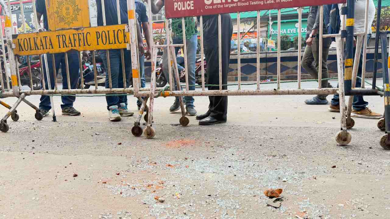 গিরিশ পার্কের রাস্তায় পড়ে রয়েছে কাচ, ইটের টুকরো। — ফাইল চিত্র।