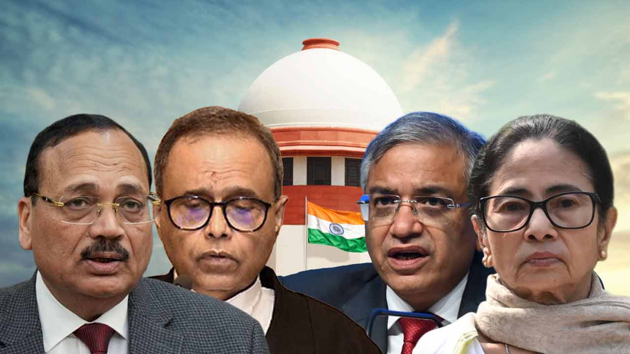 (বাঁ দিক থেকে) দেশের প্রধান বিচারপতি সূর্য কান্ত, বিচারপতি জয়মাল্য বাগচী, সিইসি জ্ঞানেশ কুমার এবং মুখ্যমন্ত্রী মমতা বন্দ্যোপাধ্যায়। —ফাইল চিত্র।