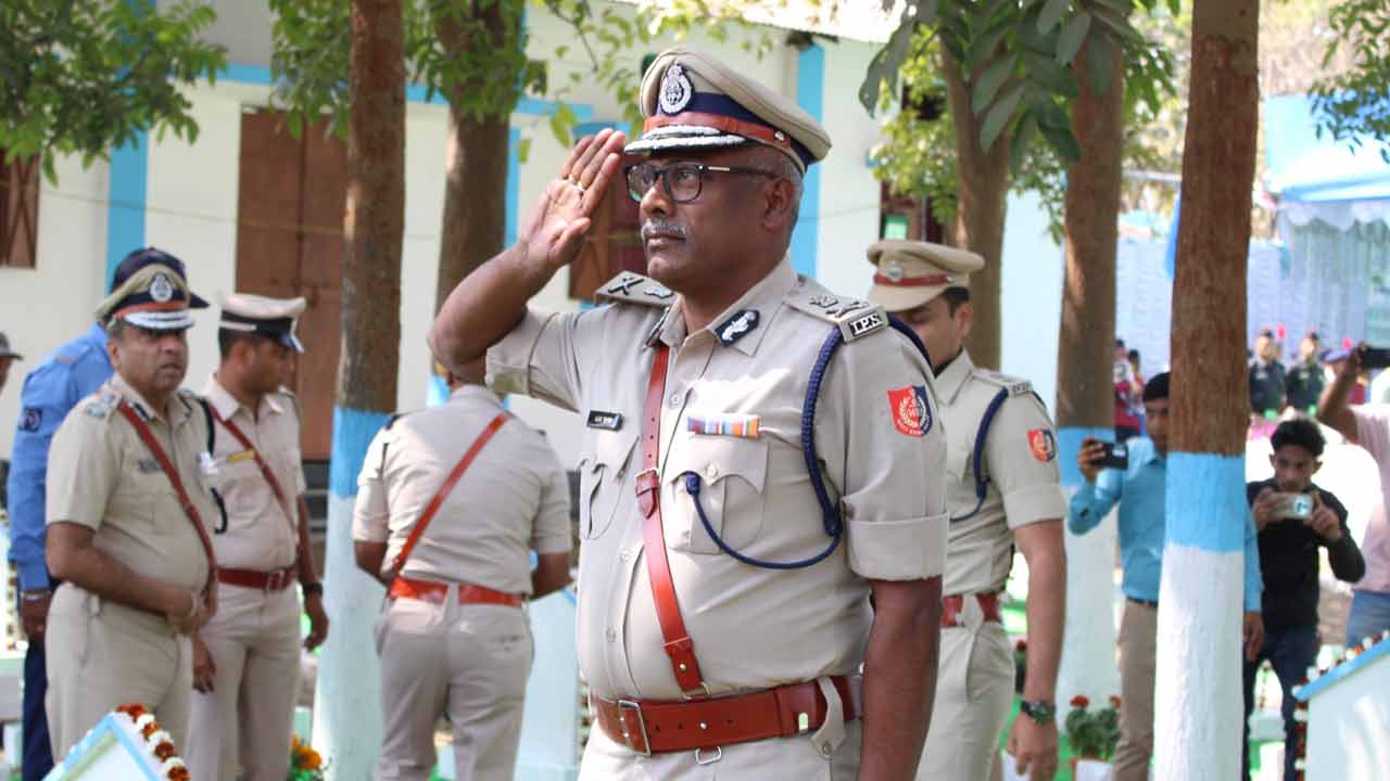 শহিদদের স্মরণে রাজ্য পুলিশের ডিজি-সহ শীর্ষ কর্তারা। —নিজস্ব ছবি।