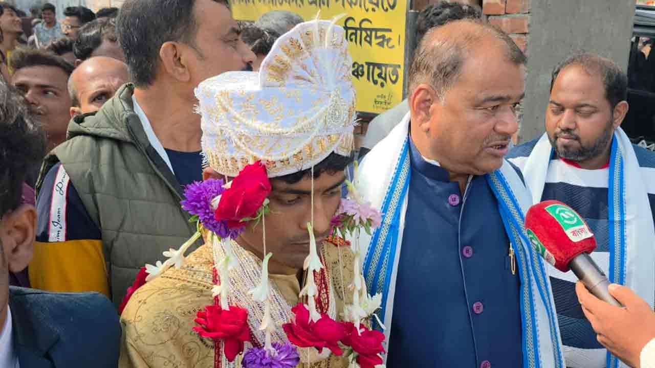এসআইআরের শুনানিকেন্দ্রের বাইরে লম্বা লাইন। সকলের নথিপত্র হাতে দাঁড়িয়ে আছেন। আচমকা সকলের নজর গেল বরবেশে এক যুবকের দিকে। তিনি একা নন, সঙ্গে আরও কয়েক জন। তাঁরা বরযাত্রী। হঠাৎ এমন পোশাকে শুনানিকেন্দ্রে বরবেশে যুবকের আবির্ভাবে হকচকিয়ে যান শুনানিতে আসা স্থানীয়েরা। খোঁজখবর নিয়ে যান, শুনানির নোটিস পেয়ে ওই যুবকও এসেছেন। শুক্রবার তাঁর বিয়ে। আর সে দিন হাজিরার ডাক পড়েছে। তাই বিয়ে করতে যাওয়ার আগে শুনানিকেন্দ্র ঘুরে গেলেন ওই যুবক!