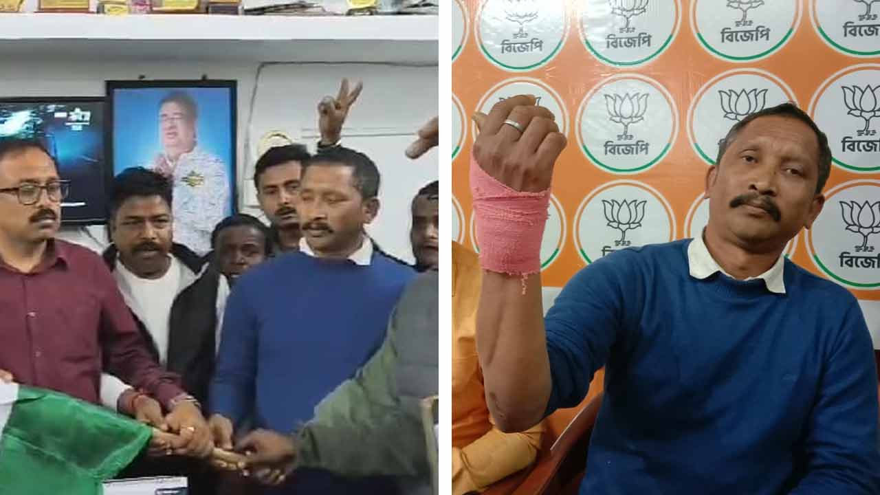 দিনহাটার বাসিন্দা কমল বর্মণ বর্তমানে বিজেপির জেলা কমিটির সদস্য। সোমবার রাতে তিনি বাজারে গিয়েছিলেন। কমলের দাবি, রাস্তায় হঠাৎ তাঁর পথ আটকে দাঁড়ান কয়েক জন। আগ্নেয়াস্ত্র দেখিয়ে তাঁকে তুলে নিয়ে যাওয়া হয় তৃণমূলের দিনহাটা-২ ব্লকের সভাপতি দীপককুমার ভট্টাচার্যের বাড়িতে। সেখানে জনাকয়েক নেতার উপস্থিতিতে তাঁর হাতে তৃণমূল পতাকা ধরিয়ে দেওয়া হয়।