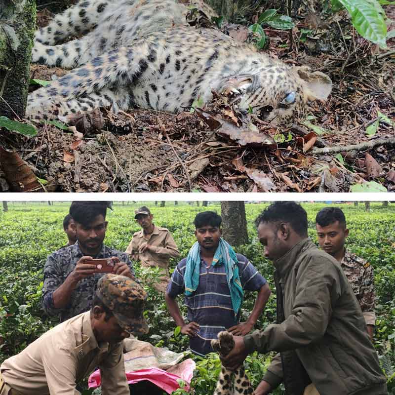 ডুয়ার্সের গয়েরকাটা চা-বাগান থেকে উদ্ধার চিতাবাঘের দেহ। — নিজস্ব চিত্র।