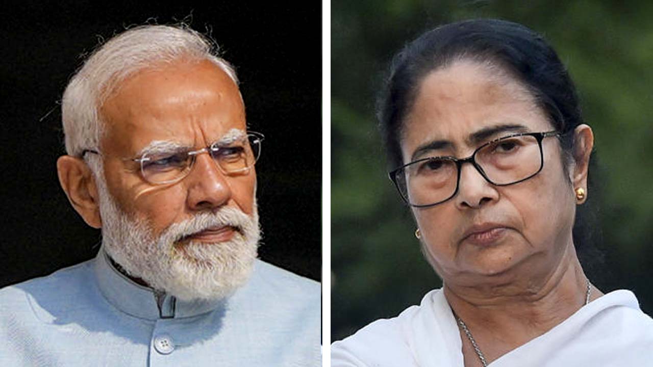 (বাঁ দিকে) প্রধানমন্ত্রী নরেন্দ্র মোদী এবং পশ্চিমবঙ্গের মুখ্যমন্ত্রী মমতা বন্দ্যোপাধ্যায় (ডান দিকে)। —ফাইল চিত্র।