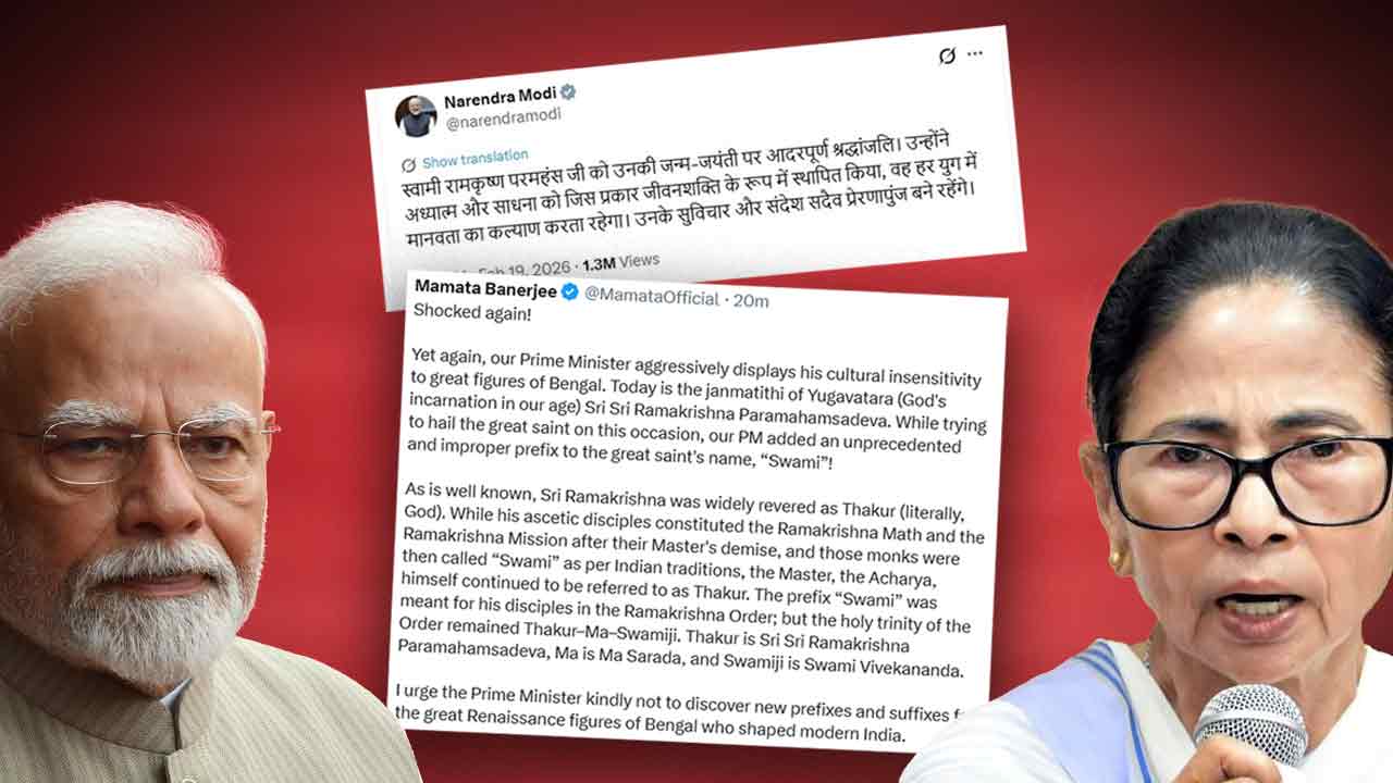 রামকৃষ্ণদেবের জন্মতিথিতে ওই মূল পোস্টের কিছু ক্ষণ পরেই প্রধানমন্ত্রীর বিরুদ্ধে তোপ দেগে আরও একটি পোস্ট করেন মমতা। দ্বিতীয় পোস্টটি ইংরেজিতে। সেখানে প্রধানমন্ত্রীকে নিশানা করে মুখ্যমন্ত্রী লেখেন, “আমি স্তম্ভিত! প্রধানমন্ত্রী আবার পশ্চিমবঙ্গের মহান ব্যক্তিত্বদের প্রতি সাংস্কৃতিক অসংবেদনশীলতা দেখালেন। আজ যুগাবতার (ঈশ্বরের বর্তমান যুগের অবতার) শ্রী শ্রী রামকৃষ্ণ পরমহংসদেবের জন্মতিথি। তাঁকে শ্রদ্ধা জানাতে গিয়ে আমাদের প্রধানমন্ত্রী তাঁর নামের সঙ্গে এক অনুপযুক্ত এবং অভূতপূর্ব উপসর্গ ‘স্বামী’ জুড়ে দিয়েছেন।”