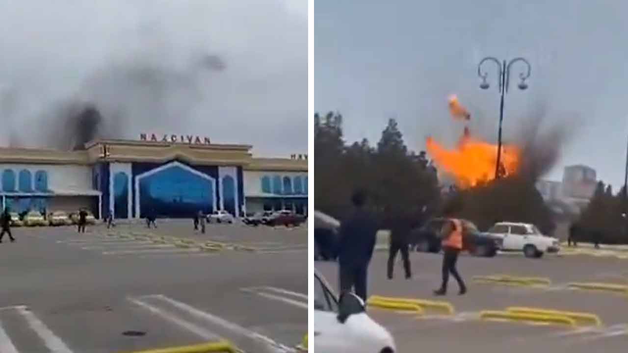 আজ়ারবাইজানের নখচিভন আন্তর্জাতিক বিমানবন্দরে বৃহস্পতিবার আছড়ে পড়ে ইরানের ড্রোন। ছবি: সংগৃহীত।