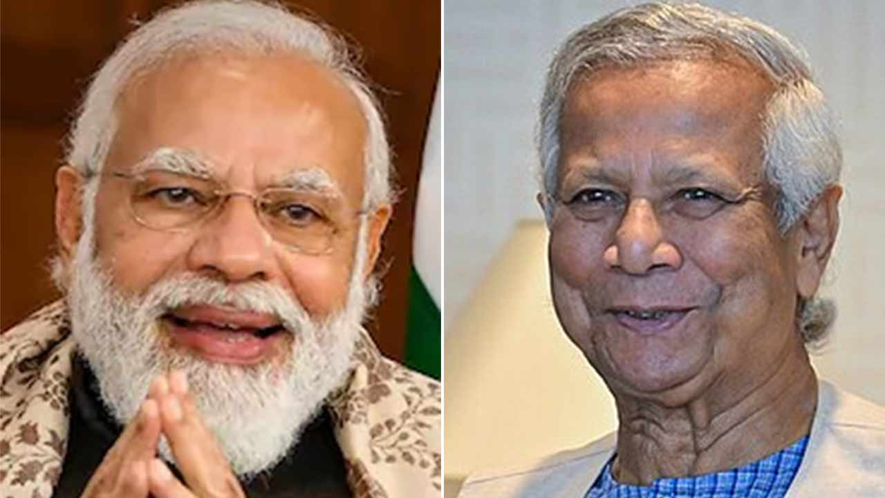 (বাঁ দিকে) ভারতের প্রধানমন্ত্রী নরেন্দ্র মোদী। বাংলাদেশের অন্তর্বর্তী সরকারের প্রধান উপদেষ্টা মুহাম্মদ ইউনূস (ডান দিকে)। —ফাইল চিত্র।