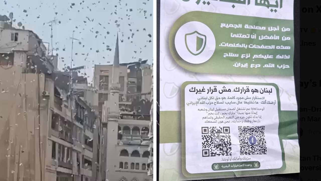 সংবাদসংস্থা এএফপি জানাচ্ছে, ইজ়রায়েলি যুদ্ধবিমানের হানাদারির সময় প্রথমে চারটি জোরালো বিস্ফোরণের শব্দ শোনা যায়। স্থানীয় বাসিন্দাদের মধ্যে আতঙ্ক ছড়িয়ে পড়ে। এর পরে যুদ্ধবিমানগুলি থেকে ফেলা হতে থাকে লিফলেটের তাড়া। লেবাননের সরকারি টিভি চ্যানেল জানিয়েছে, ইজ়রায়েলি যুদ্ধবিমানগুলি পশ্চিম বেইরুটের ভার্দুন, হামরা এবং আইন আল-ম্রেইস এলাকায় খুব নিচু দিয়ে উড়ে এসে অসংখ্য লিফলেট ফেলেছে। ওই লিফলেটগুলিতে লেবাননের জনগণের উদ্দেশে লেখা— ‘‘ইরানের দোসর হিজ়বুল্লাকে নিরস্ত্র করতে হবে। লেবানন কোন পথে হাঁটবে, সে সিদ্ধান্ত তোমাদের—অন্য কারও নয়।’’