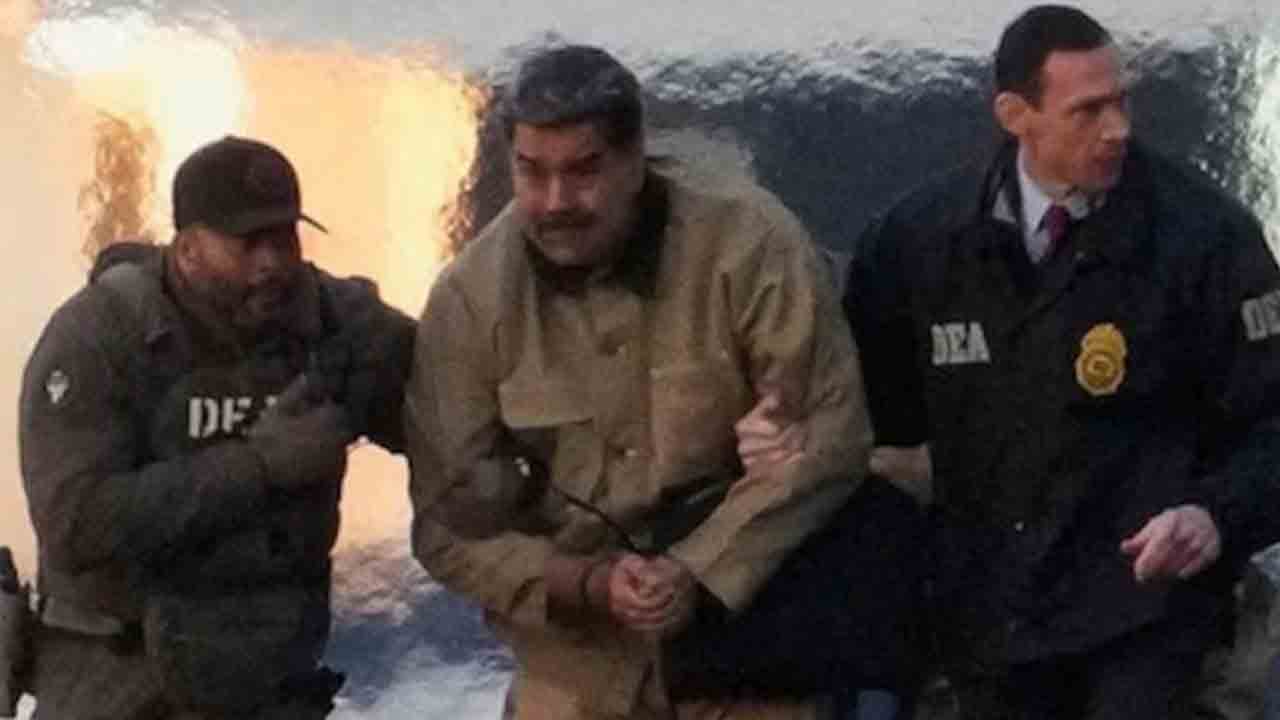 ভেনেজ়ুয়েলার প্রেসিডেন্ট নিকোলাস মাদুরোকে বন্দি করে নিয়ে যাচ্ছে মার্কিন বাহিনী। ছবি: রয়টার্স।