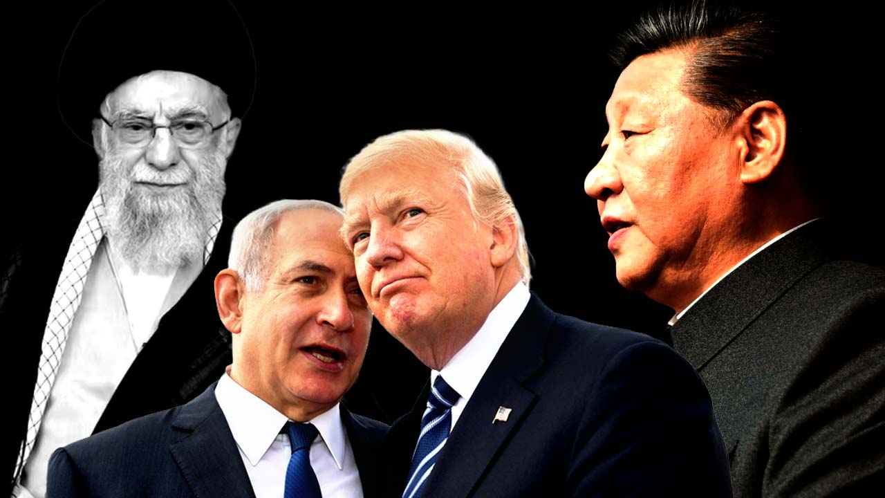 (বাঁ দিক থেকে) ইরানের সর্বোচ্চ ধর্মীয় নেতা আয়াতোল্লা আলি খামেনেই, ইজ়রায়েলের প্রধানমন্ত্রী বেঞ্জামিন নেতানিয়াহু, আমেরিকার প্রেসিডেন্ট ডোনাল্ড ট্রাম্প এবং চিনের প্রেসিডেন্ট শি জিনপিং। গ্রাফিক: আনন্দবাজার ডট কম।