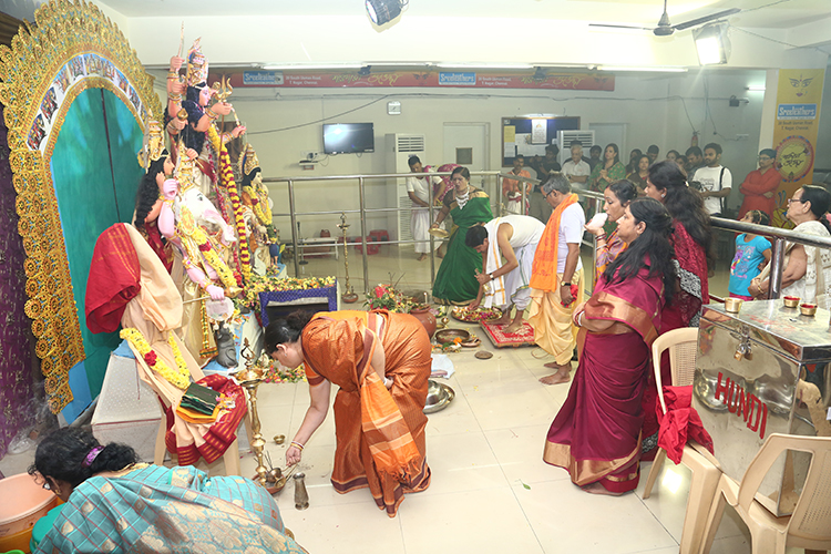 কলকাতার বাঙালির ভোজনরসিক বলে নাম বা বদনাম আছে। কলকাতায় না থেকেও আমাদের খাওয়া-দাওয়ার ব্যাপার কিন্তু বেশ এলাহি। পুজোর প্রতিটা দিন দেড় থেকে দু’হাজার লোকের পাত পড়ে এখানে। দিনের বেলায় নিরামিষ। বাঙালিদের পাশাপাশি স্থানীয় তামিল মানুষ, কর্মরত অন্যান্য প্রদেশের লোকও এক পংক্তিতে সামিল হন পুজোর দুপুরে খাওয়ার আসরে। রাতে থাকে আমিষ খানার আয়োজন। আর চতুর্থী বা পঞ্চমীতে বাড়ির মহিলারা নানা পদ রেঁধে নিয়ে এসে স্টলে বিক্রি করেন। এই অনুষ্ঠানটার নাম ‘আনন্দমেলা’। ক্রেতা ওখানে আমরাই। কিন্তু পুরোটাই নির্মল আনন্দ।