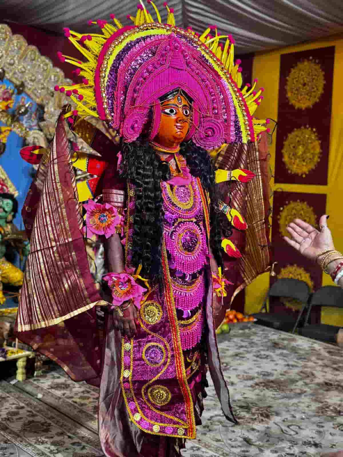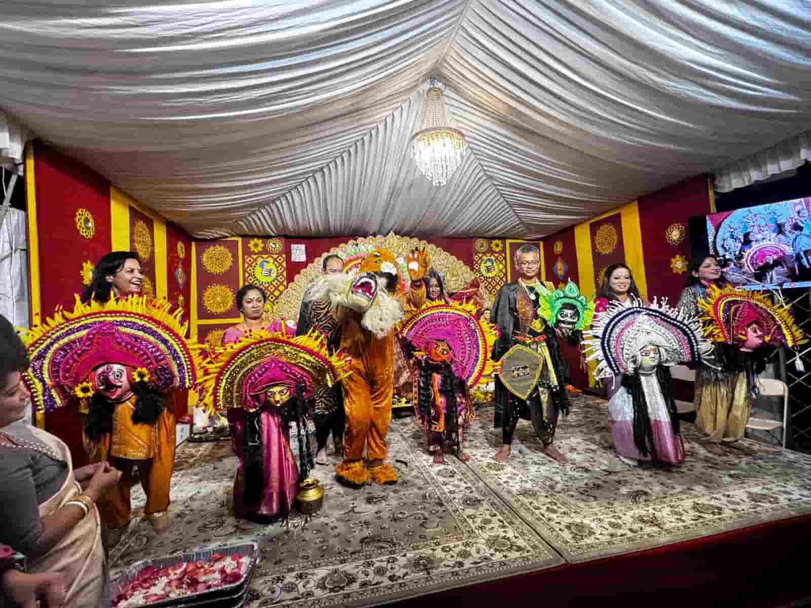 মহানবমীর জাদুকরী সন্ধ্যায় মঞ্চে ছৌ নাচের ছন্দে মিলল মুখোশ আর হৃদয়ের মোহনা। ঢোল-ধামসা ও সানাইয়ের তালে নৃত্যশিল্পীরা যখন দেবীর আবির্ভাব, দেবতাদের শক্তির মিলন, এবং মহিষাসুরের পরাজয়ের দৃশ্য ফুটিয়ে তুললেন, দর্শকরা যেন চোখের সামনে দেখতে পেলেন বৈদিক যুদ্ধক্ষেত্রের আবহ। মুখোশের তীক্ষ্ণ চোখ আর দেহের শক্তিশালী ছন্দে মঞ্চে ফুটে উঠল এক পূর্ণাঙ্গ যুদ্ধের দৃশ্য। প্রবাসে, বিশেষ করে সুদূর আমেরিকায়, ছৌ নৃত্যের এমন পরিবেশনা এক দুর্লভ অভিজ্ঞতা, যা দুর্গাপুজোর আচার ও ধর্মীয় তাৎপর্যের সঙ্গে সম্পূর্ণ ভাবে মিশে গেল। ফ্রিমন্টের পুজো তাই এ বার শুধু প্রবাসী বাঙালির আনন্দ নয়, হয়ে উঠল বাংলার গ্রামীণ সংস্কৃতিরও এক বিজয়বার্তা।