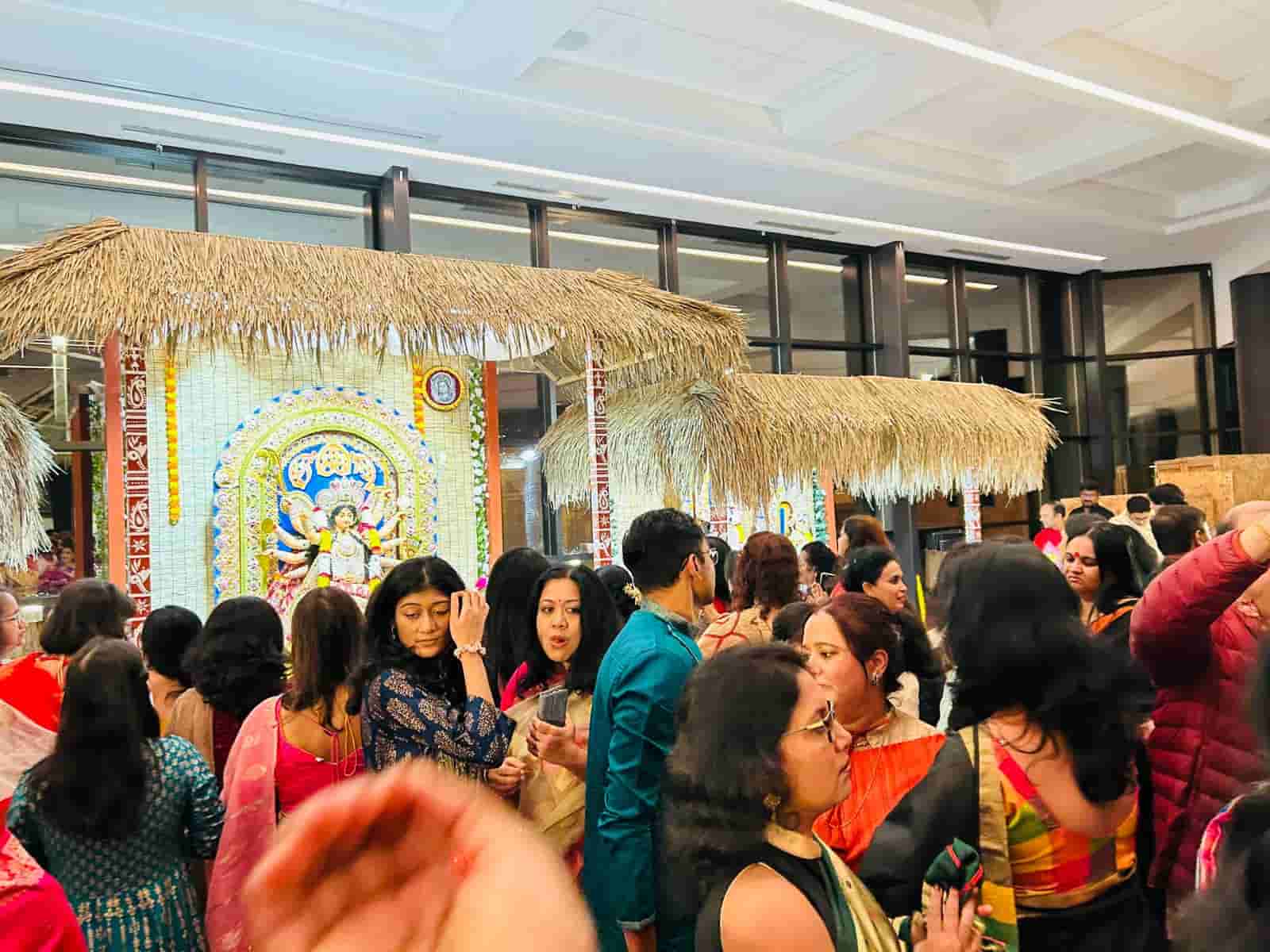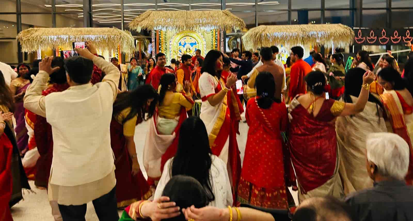 পুজোর দিনগুলিতে এখানেও বাঙালিরা চিরাচরিত পোশাকে সেজে ওঠেন। লুচি-পায়েসের গন্ধে মিশে যায় স্মৃতির সুবাস। ধুনুচি নাচের উদ্দামতা আর দেবীর চরণে অঞ্জলির মন্ত্র যেন মুহূর্তের জন্য ভুলিয়ে দেয় হাজার মাইলের দূরত্ব। সন্ধিপুজোর আরতি, সিঁদুর খেলা, আর সেই সঙ্গে পরিচিত ঢাকের বোল—সবই যেন এখানে এক অচিন সুরের মূর্ছনা তৈরি করে।
