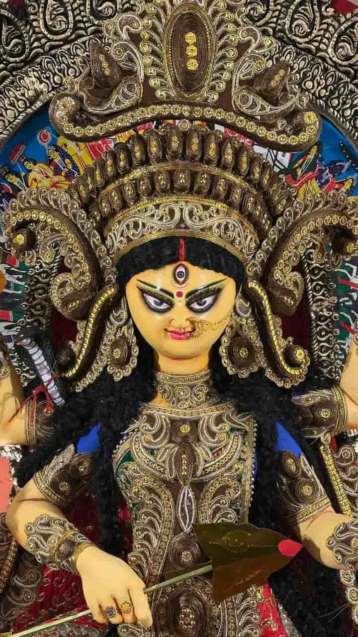 অন্য দিকে বৃষ্টির চোখ রাঙানিকে তোয়াক্কা না করেই ত্রিধারার জগদ্ধাত্রী পুজোয় হাজির হলেন দেবলীনা কুমার।