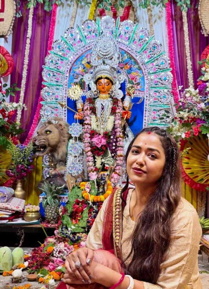 জগদ্ধাত্রী আরাধনায় মাতলেন সোহিনী সরকারও।