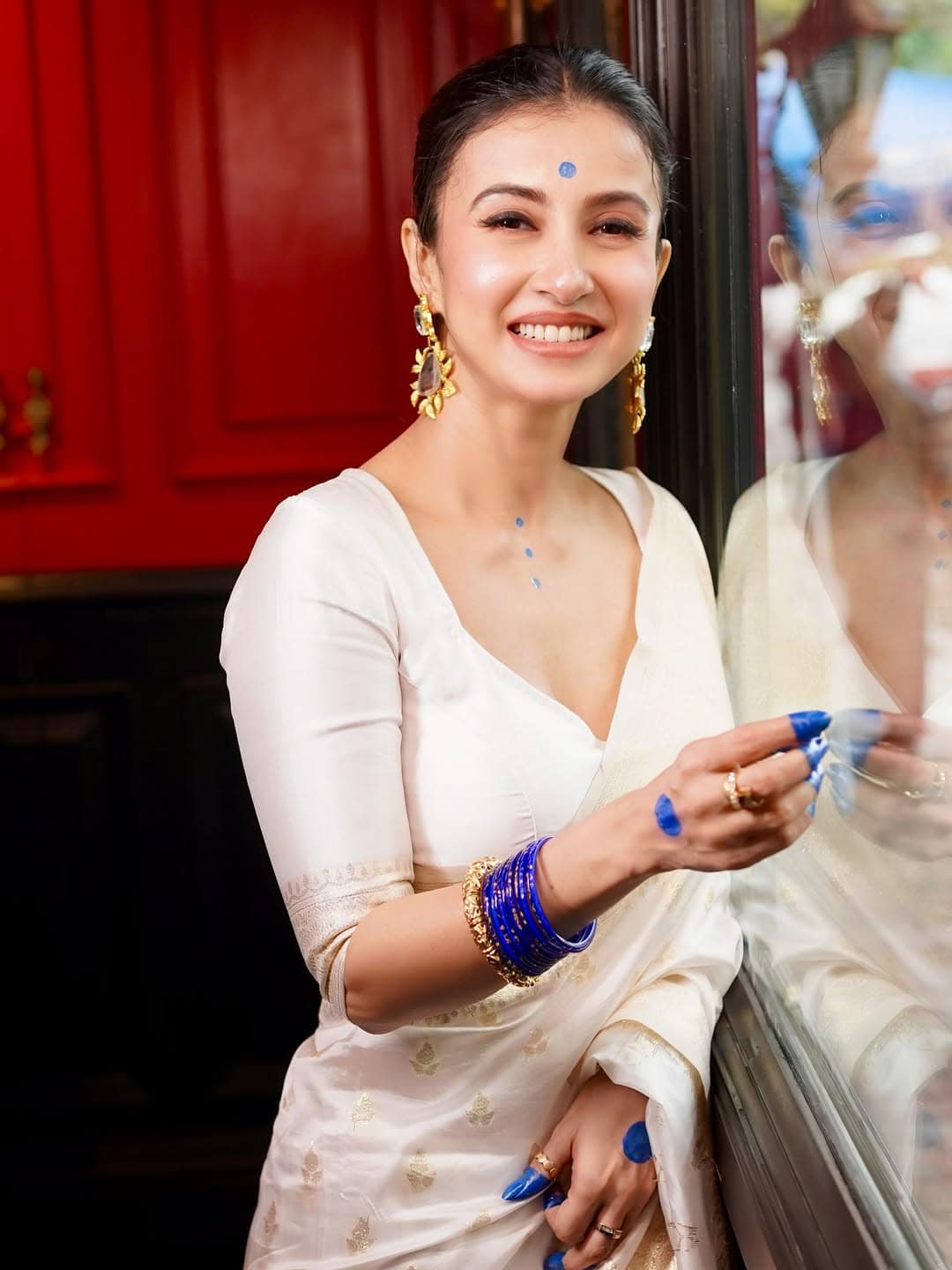 সাদা শাড়ি। কপালে নীল টিপ। গলার কাছে নীল বিন্দু। দুই হাতে নীল চুড়ির সঙ্গে শোভা বাড়াচ্ছে আলতার ছোঁয়া। তবে লাল নয়। চমক এখানেই– মনামীর আলতার রং নীল। সম্প্রতি একটি অনুষ্ঠানে এই সাজেই হাজির হয়েছিলেন অভিনেত্রী। ছবিশিকারি থেকে শুরু করে নেটাগরিকদের চোখ তখন তাঁর দিকেই।
